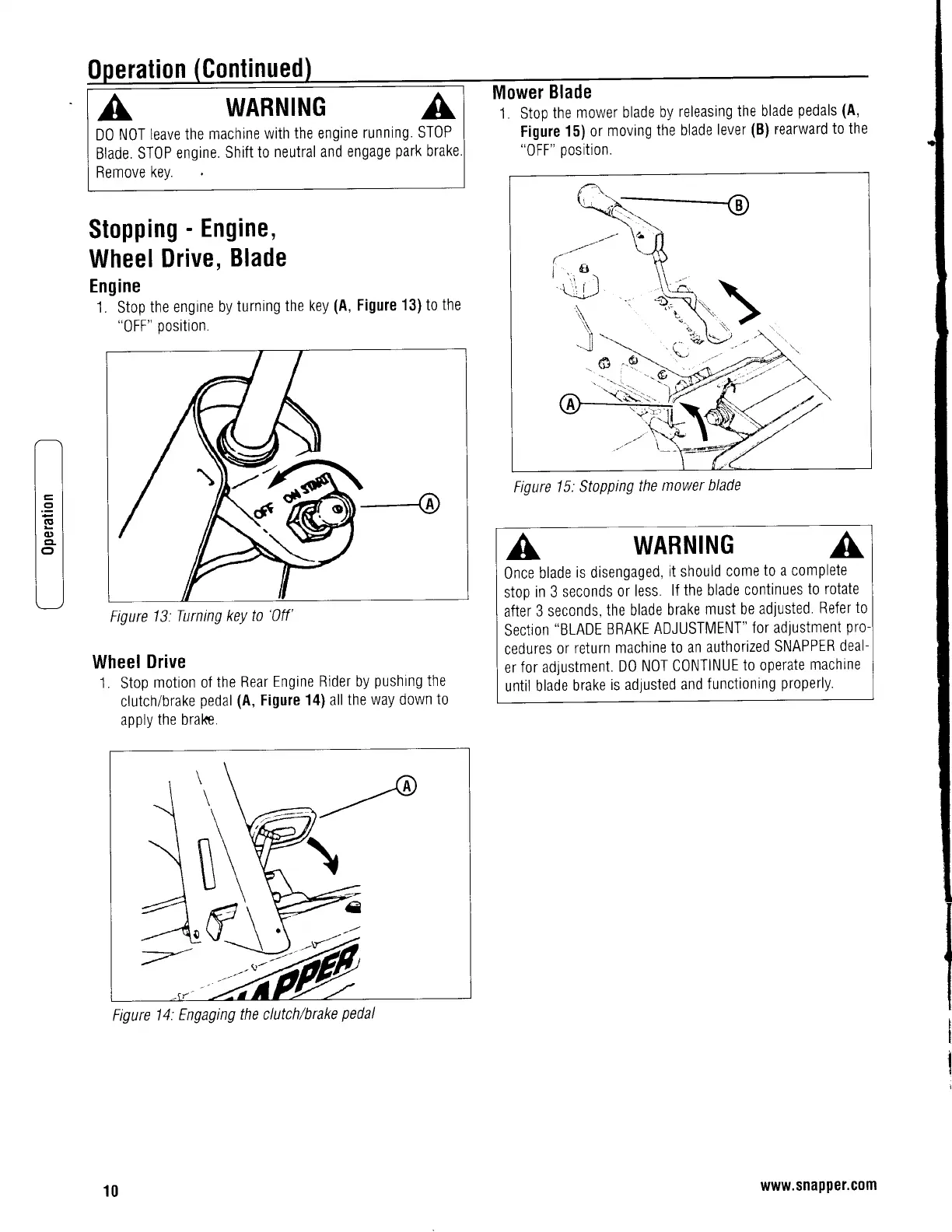 Snapper 7800104 - Stopping - Engine, Wheel Drive, Blade