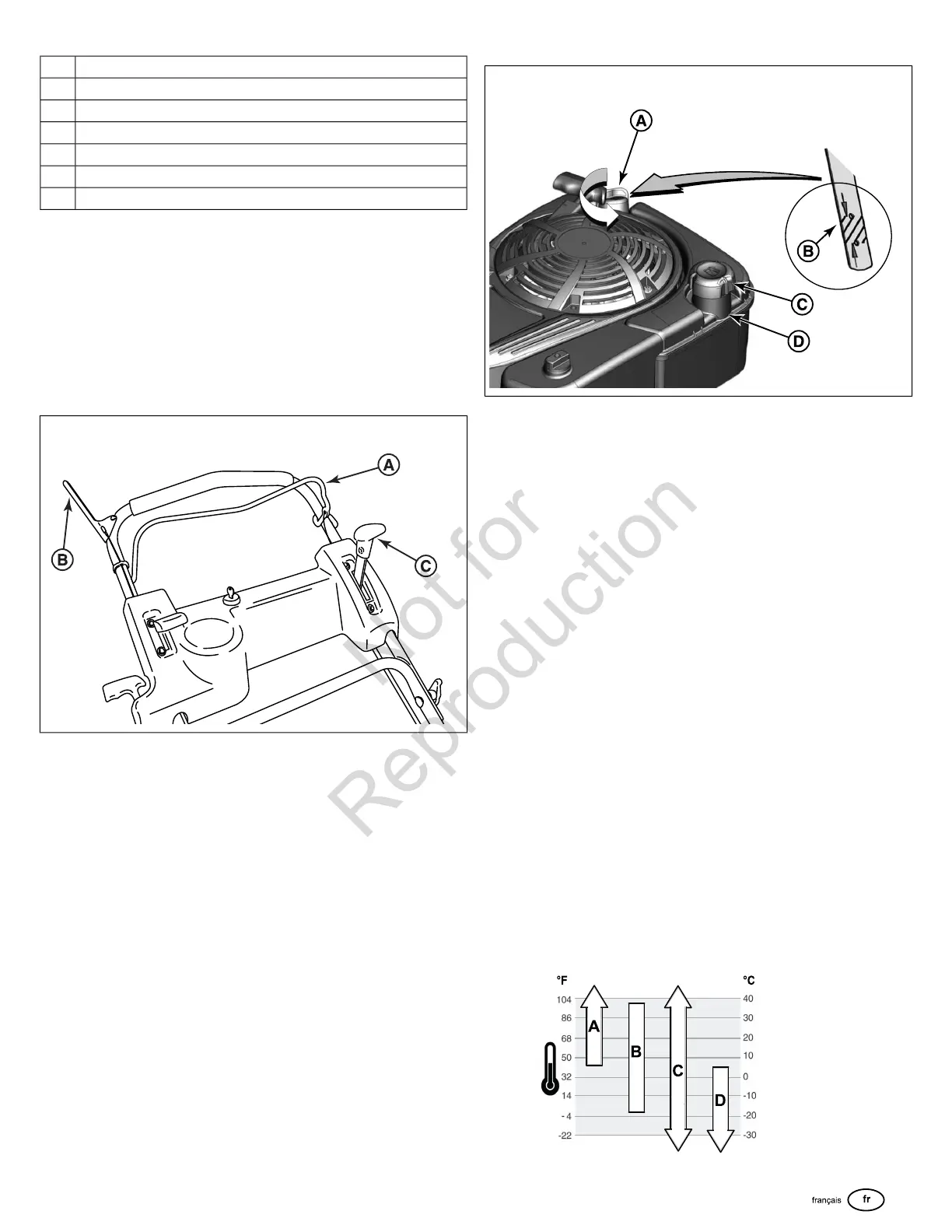 convenant au moteur. Utiliser le tableau pour sélectionner la