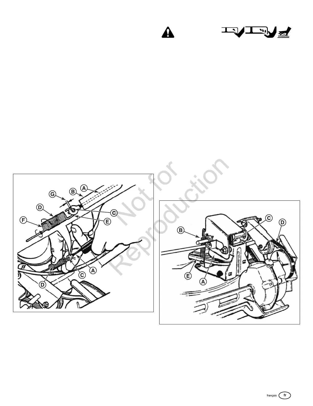 2. Ressort d'entraînement brisé ou décroché (B).