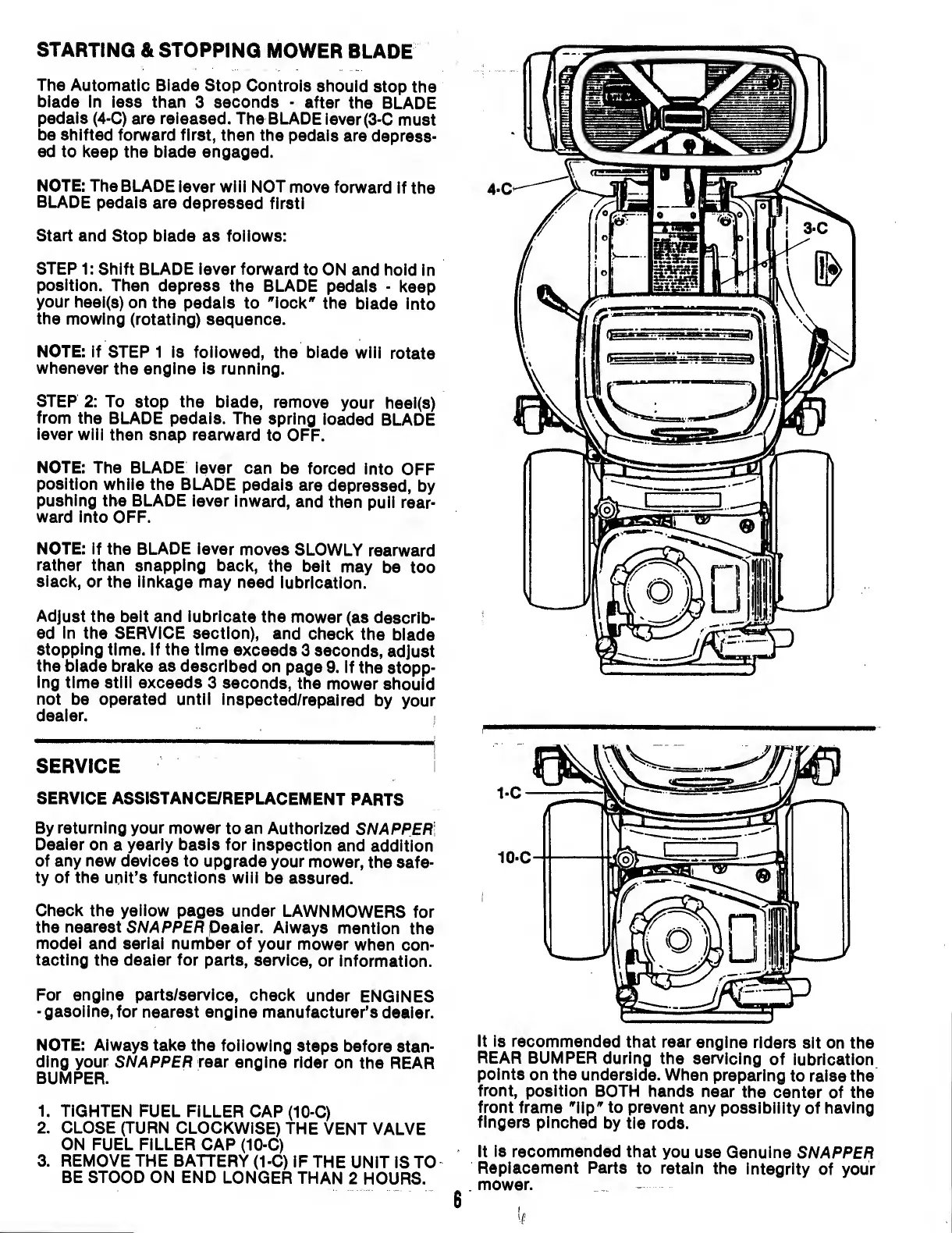 Snapper 8 Series - SERVICE Assistancereplacement PARTS