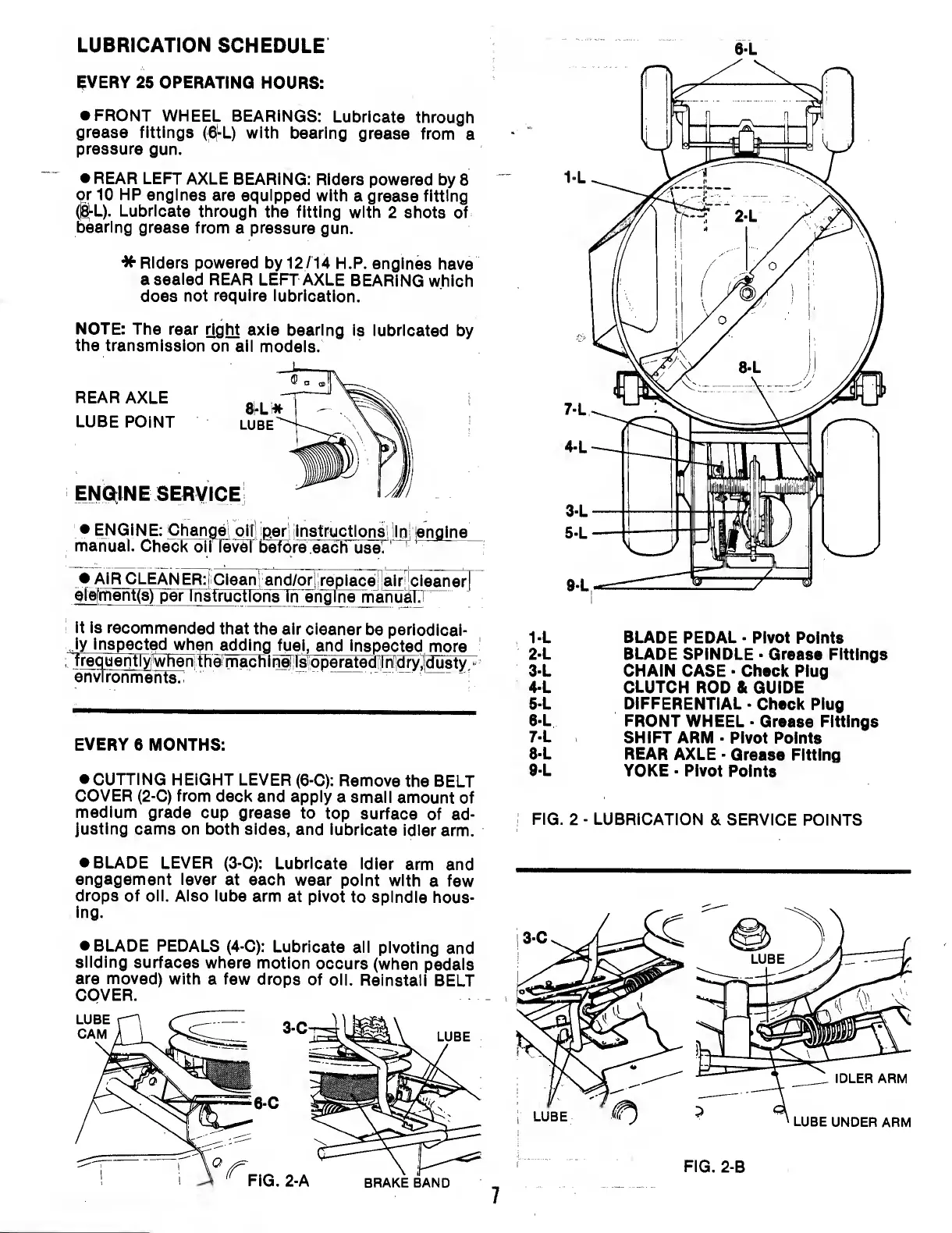 Snapper 8 Series - Lubrication Schedule; Every 6 Months
