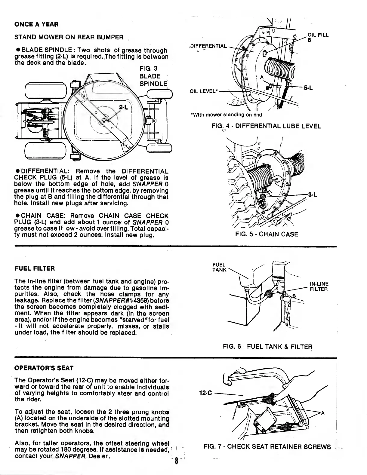 Snapper 8 Series - Fuel Filter; Operators Seat
