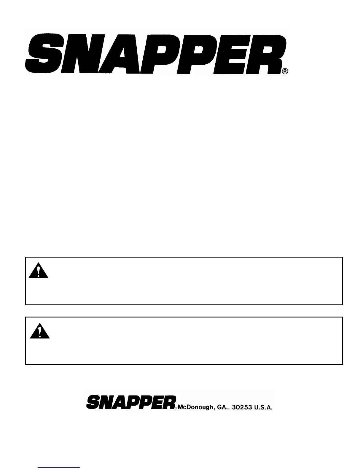 manual, and on the machine, engine and attachments. If you have any questions about your Snapper product,