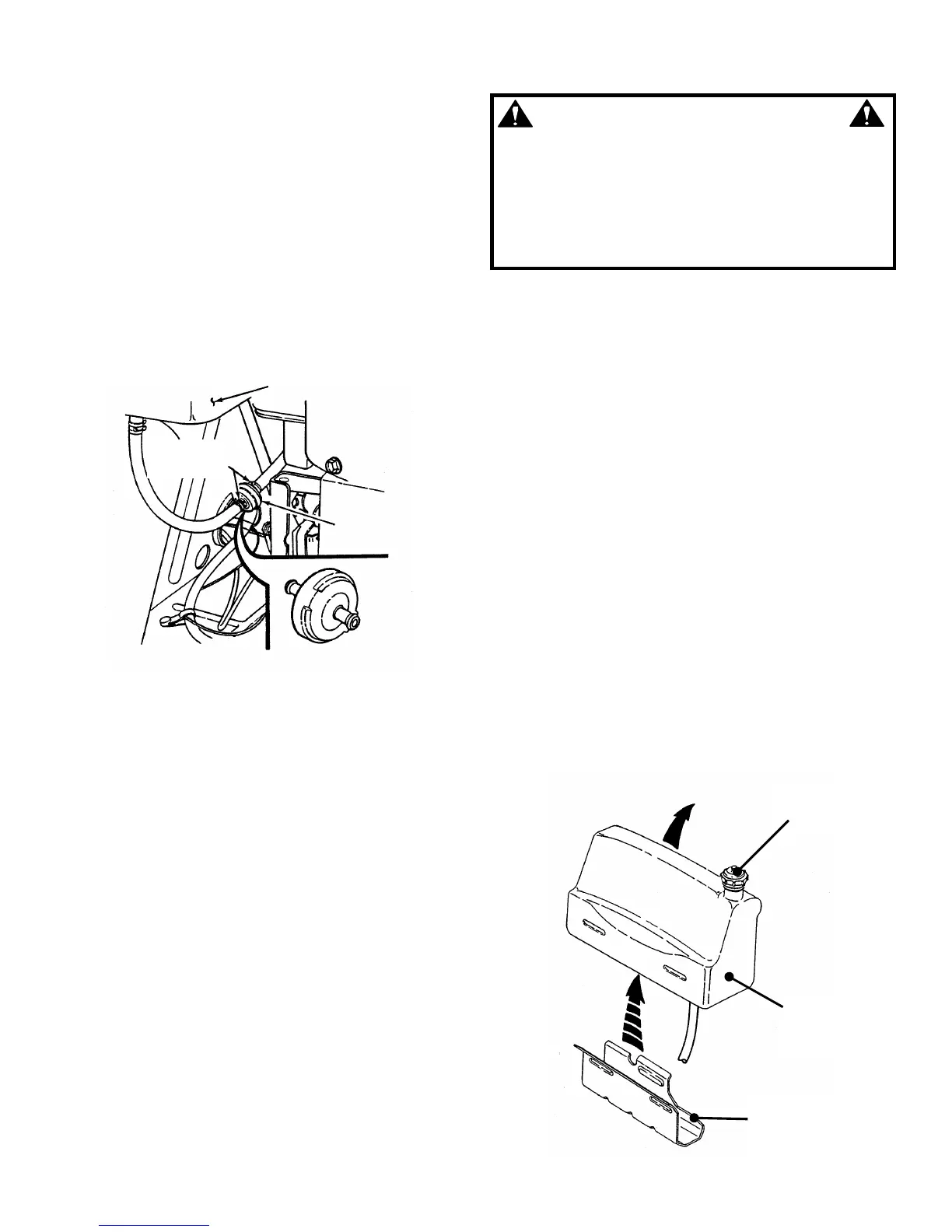 IMPORTANT: To stop flow of fuel, tank may be removed