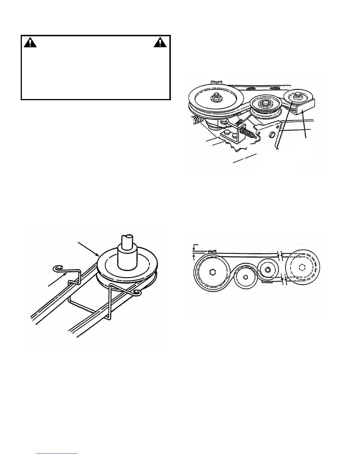 “CHECK MOWER DRIVE BELT”. Replace belt if signs