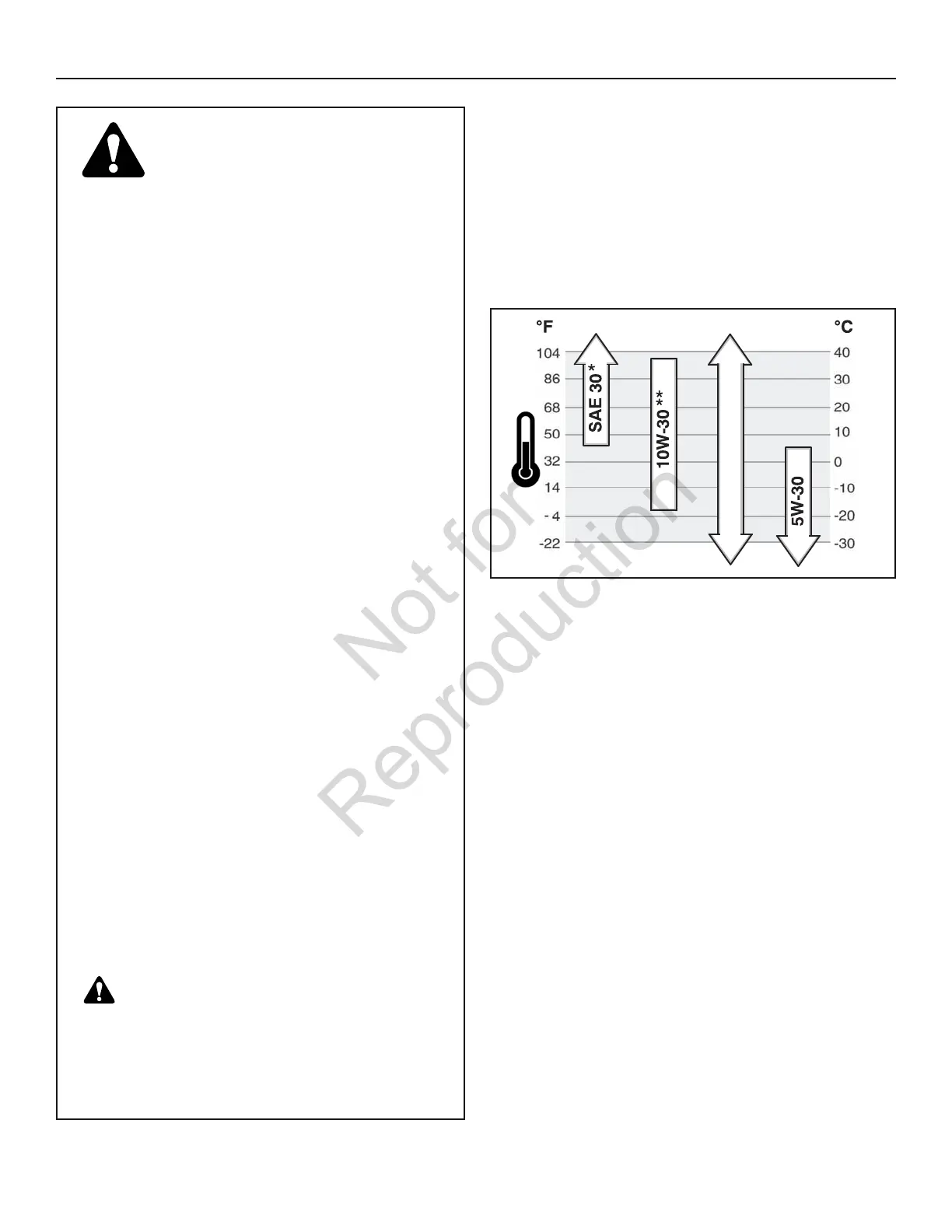 * Unter 4°C (40°F) führt der Nutzen von SAE 30 zu einem schweren Start.