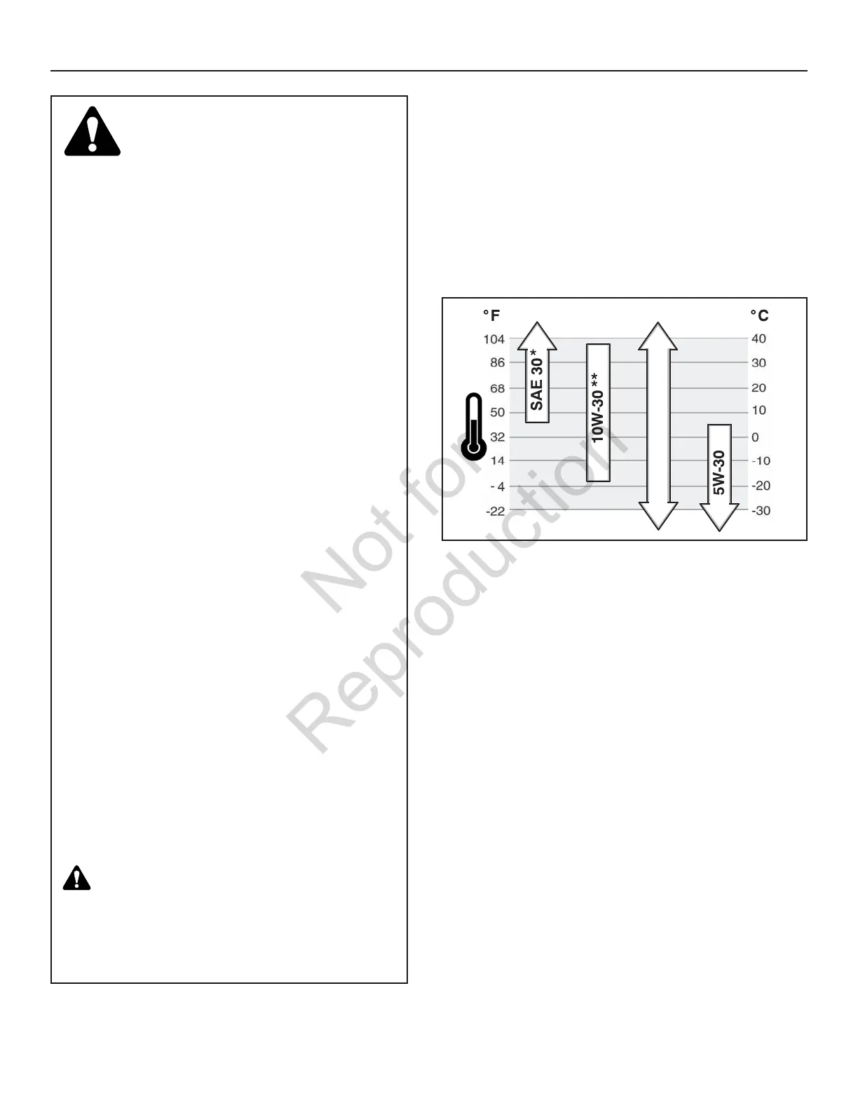 * El uso de aceite SAE 30 a temperaturas inferiores a 40°F (4°C) producirá dificultad