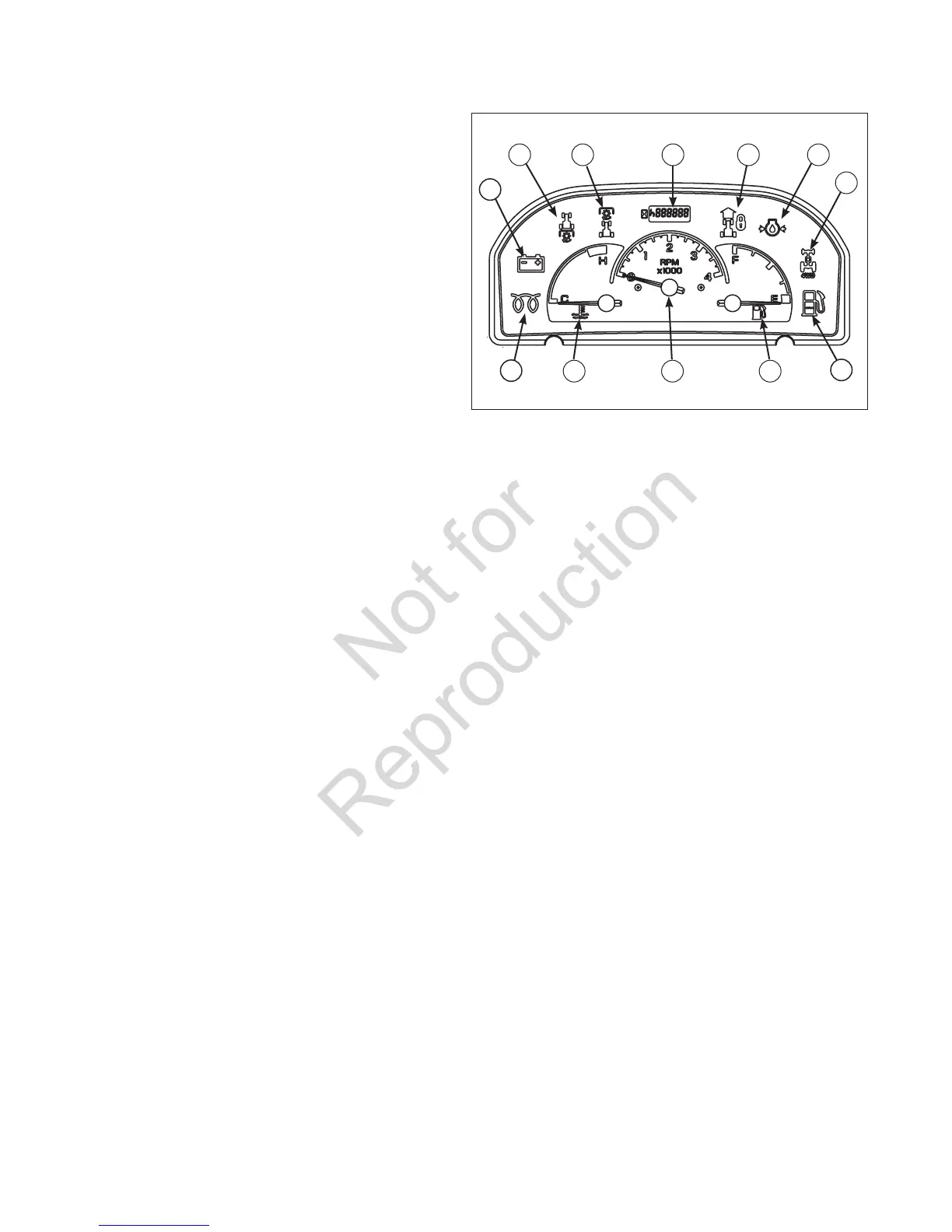 Displays the engine RPM. Normal operating speed is