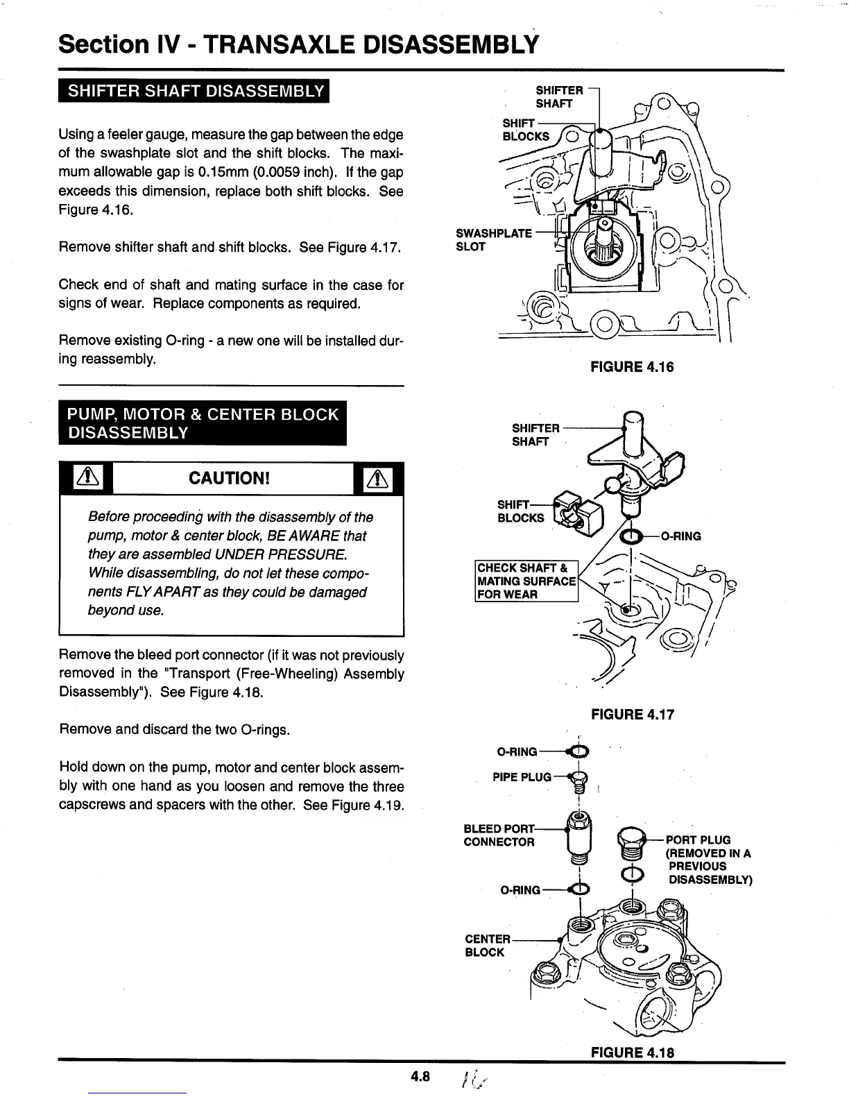 Snapper K50 - Shifter Shaft Disassembly; Pump, Motor & Center Block Disassembly