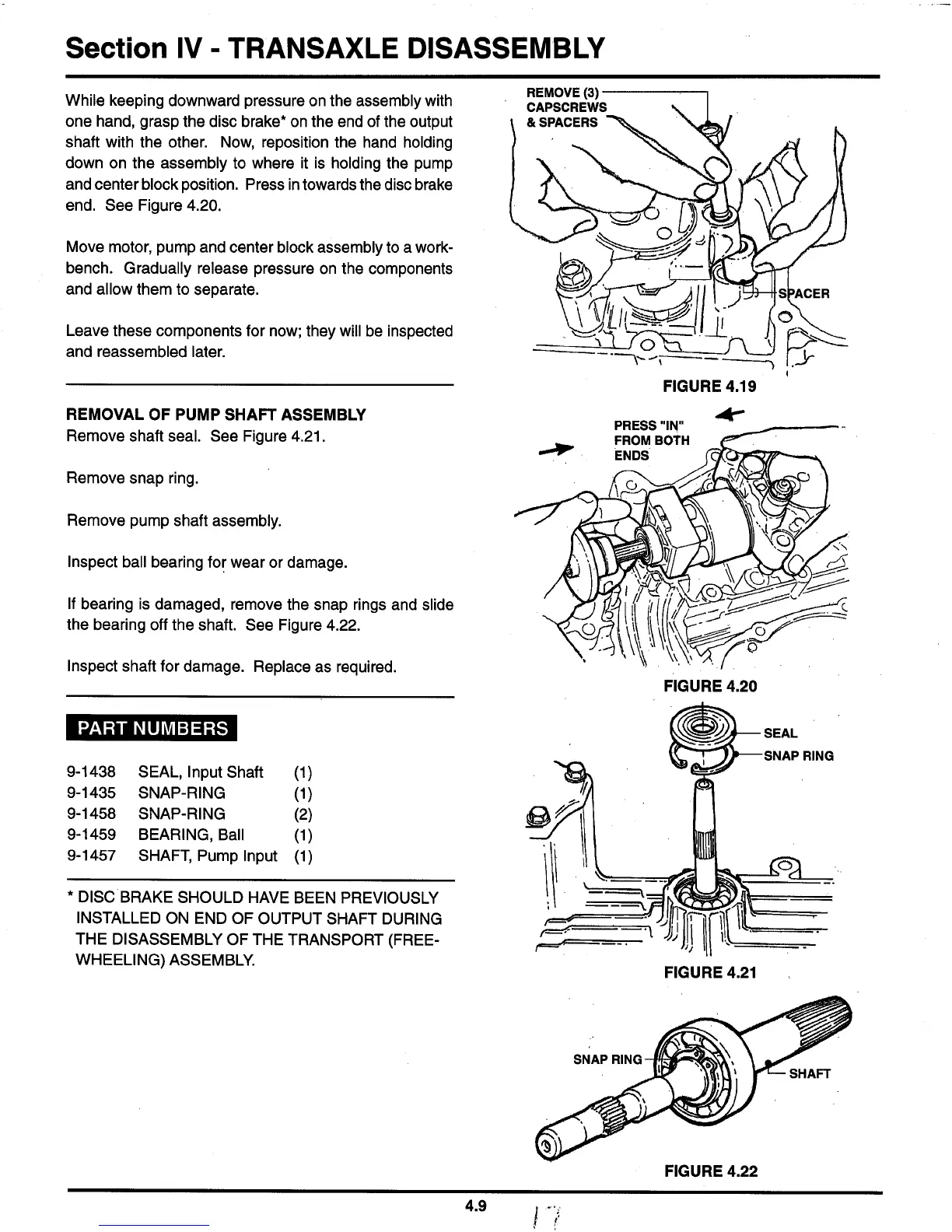 Snapper K50 - Removal of Pump Shaft Assembly; Part Numbers