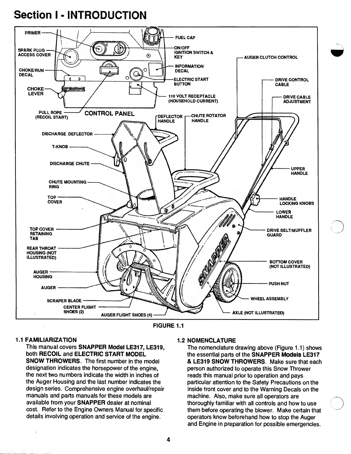 Snapper LE317 - Section I - INTRODUCTION; Familiarization; Nomenclature