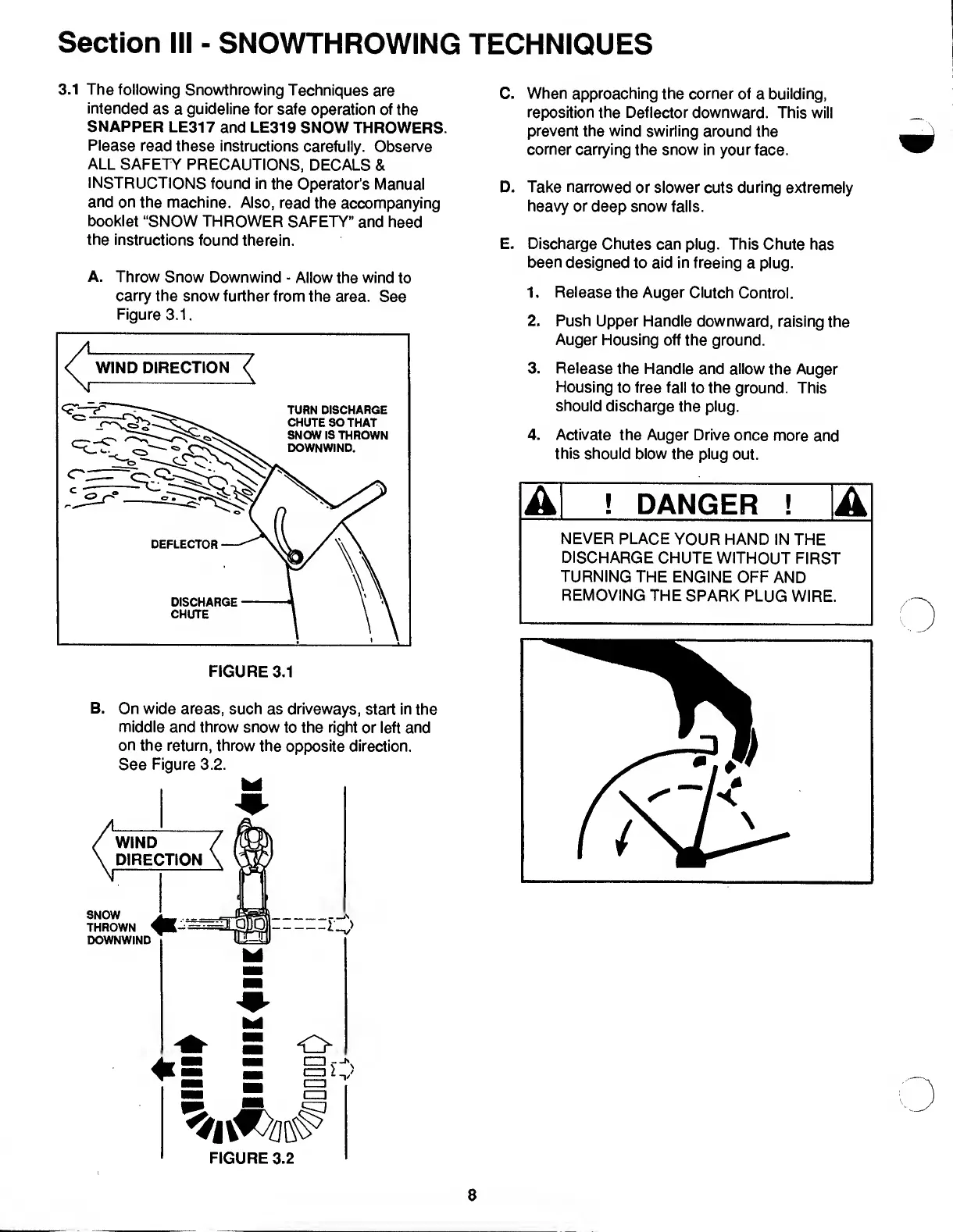 Snapper LE317 - Section III - SNOWTHROWING TECHNIQUES