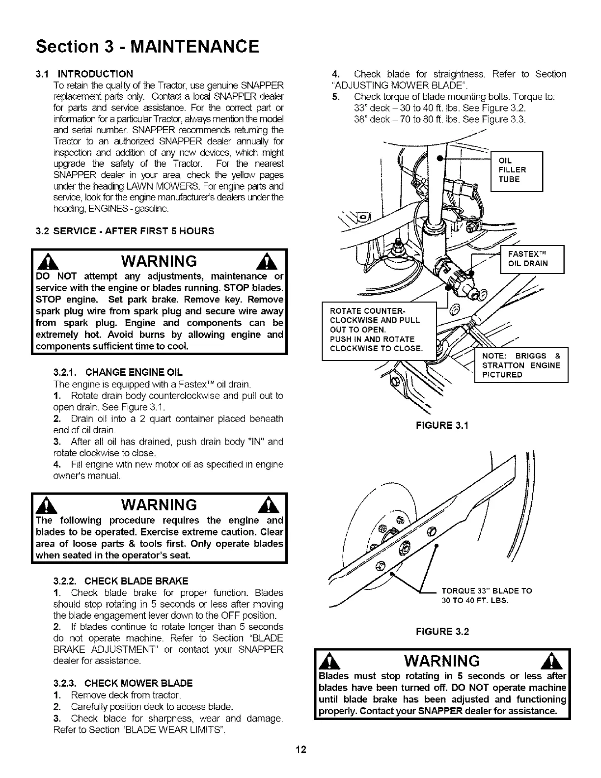 33" deck - 30 to 40 ft. Ibs. See Figure 3.2.