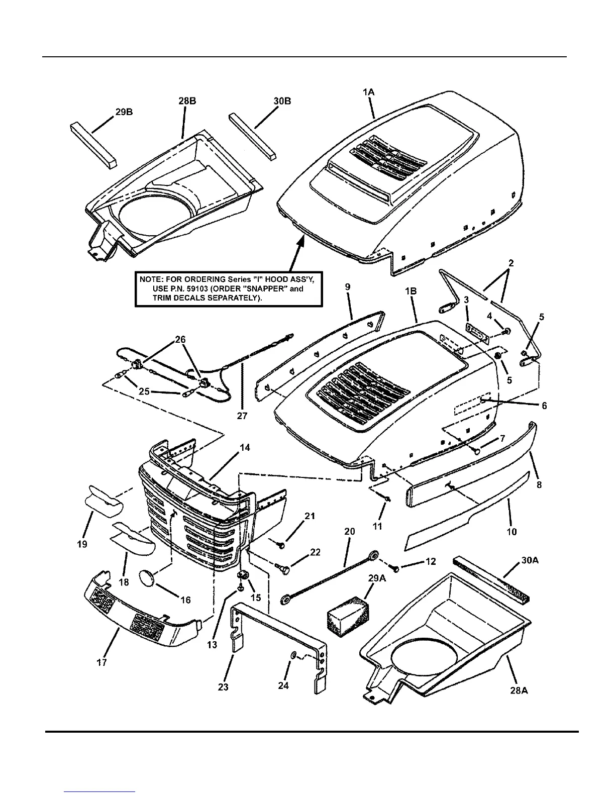 Snapper LT160H42HBV - Hood, Bumper, Headlights, and Components