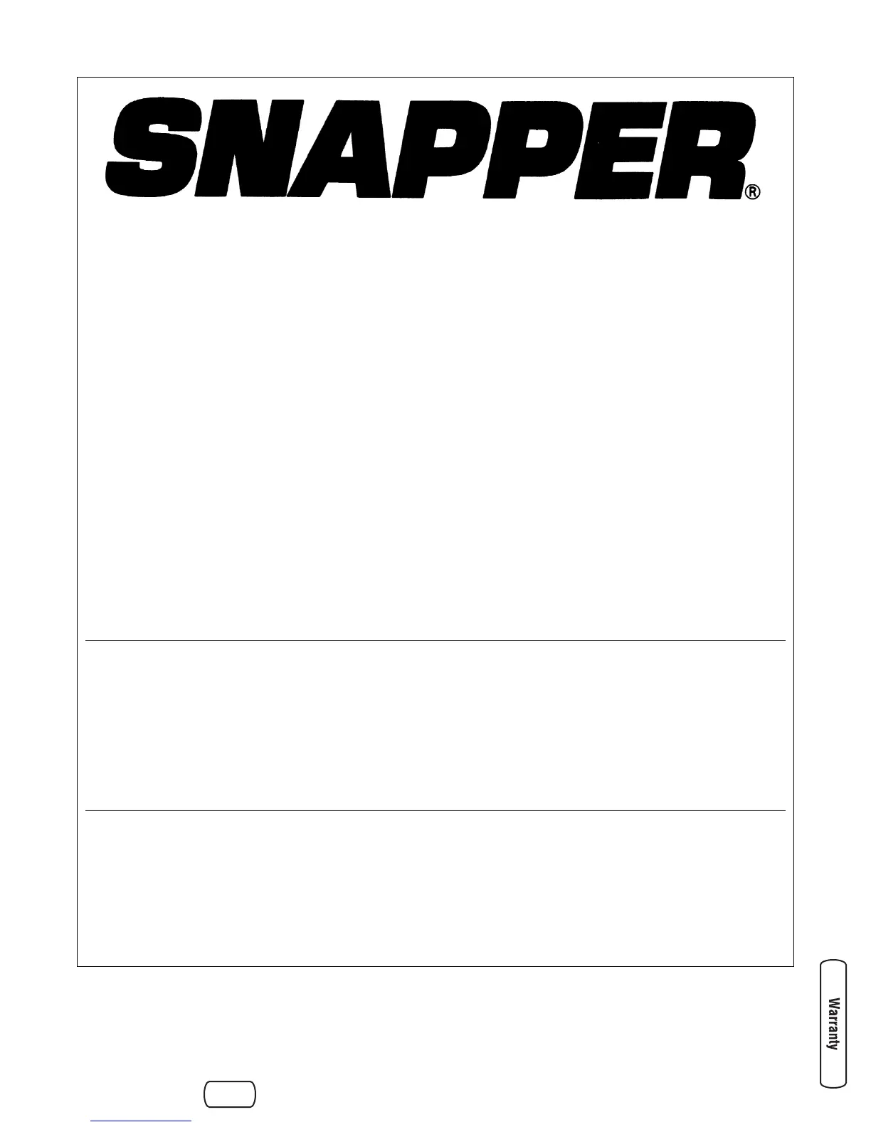 IMPORTANT: Please fill out the attached SNAPPER Product Registration Card immediately and mail to: