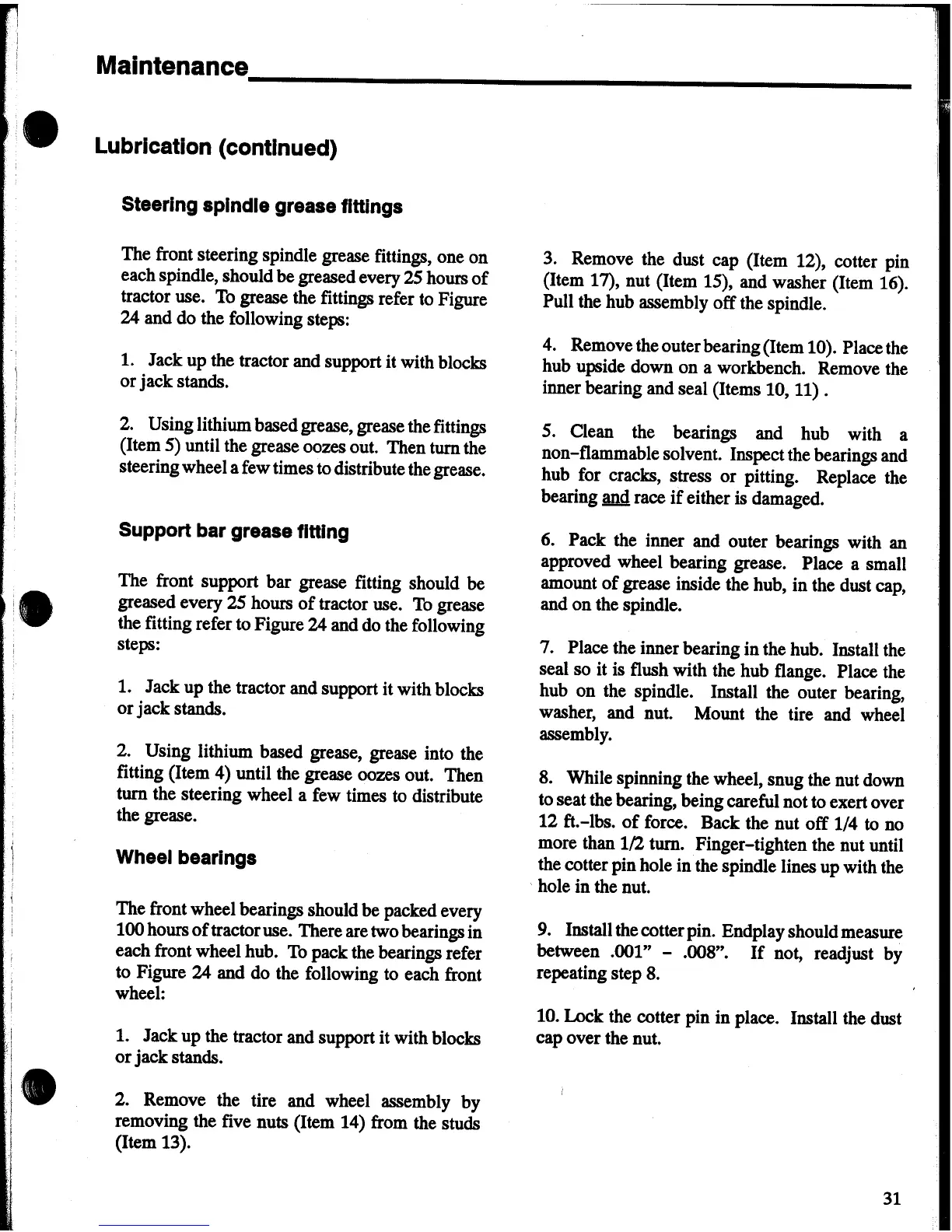 Snapper MGt1800G - Steering Spindle Grease Fittings; Support Bar Grease Fitting; Wheel Bearings