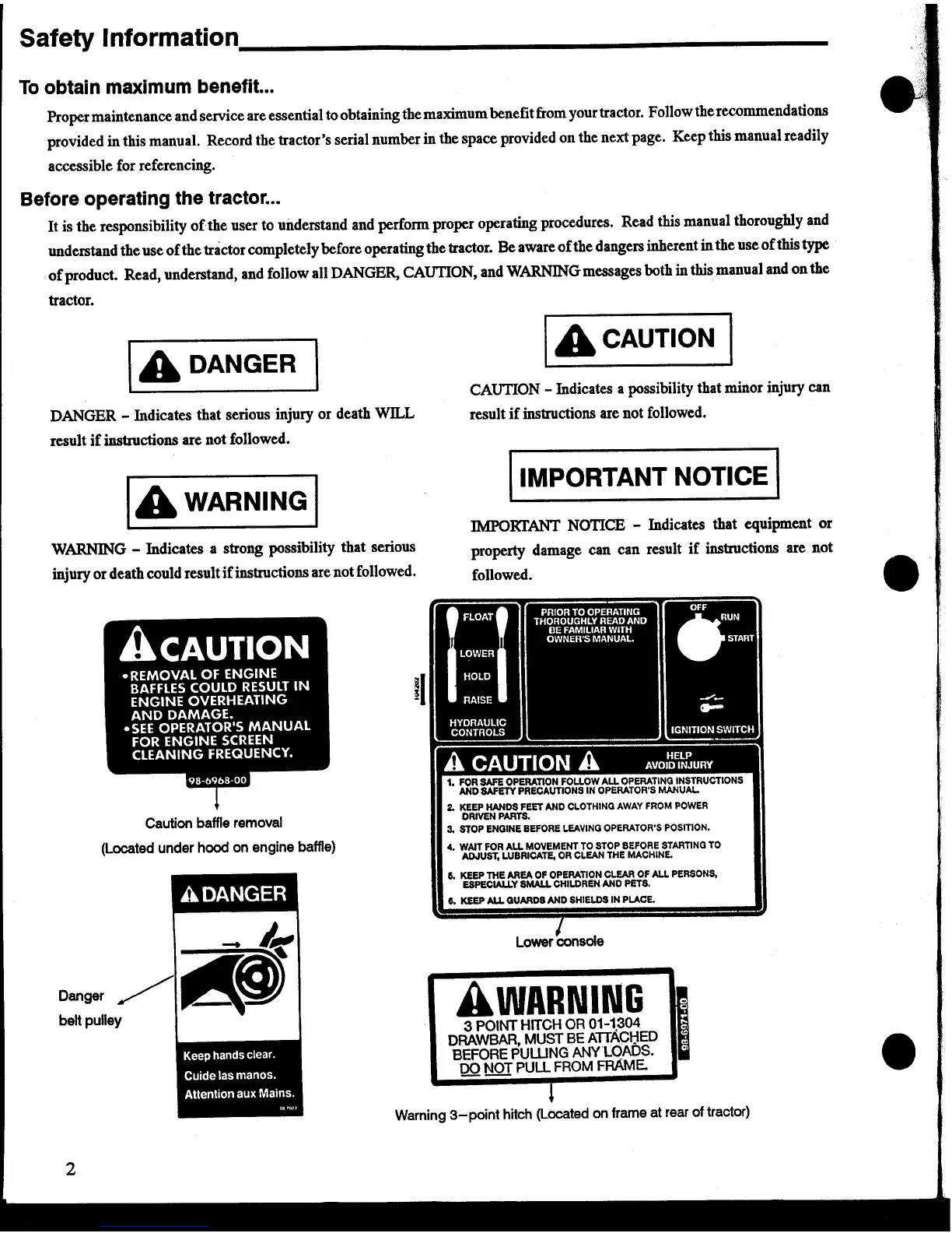 Snapper MGt1800G - Safety Information; Before Operating the Tractor