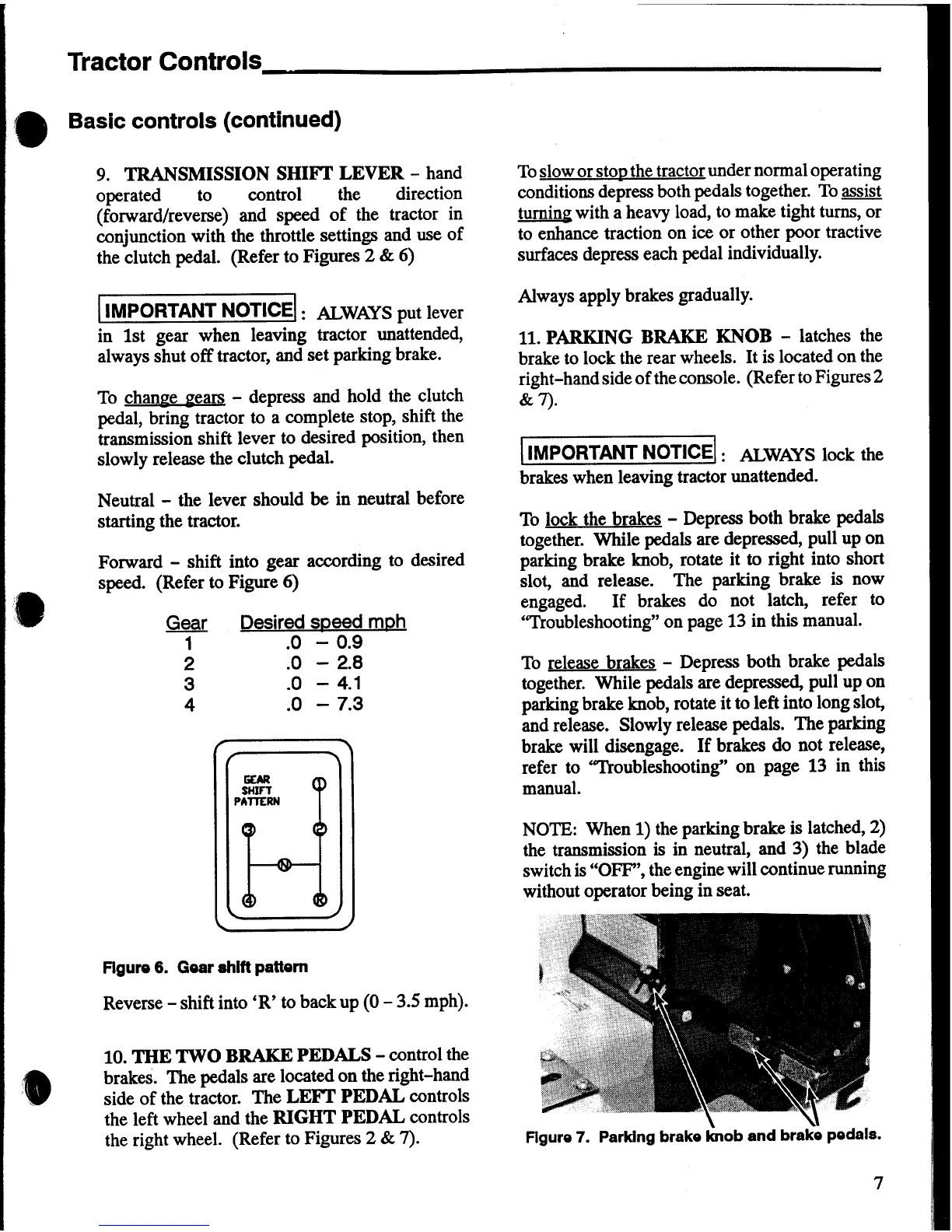 Snapper MGt1800G - Transmission Shift Lever; The Two Brake Pedals; Parking Brake Knob
