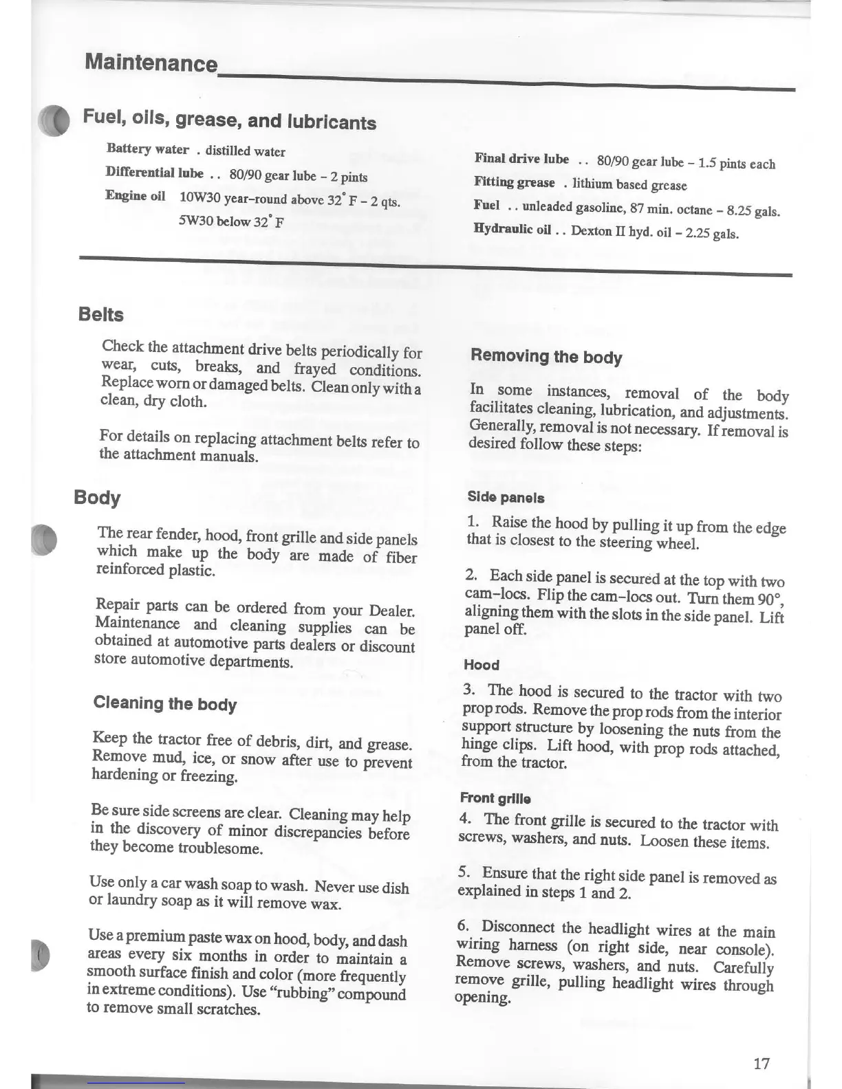 Snapper MGT2000H - Fuel, Oils, Grease and Lubricants; Belts; Body; Removing the Body