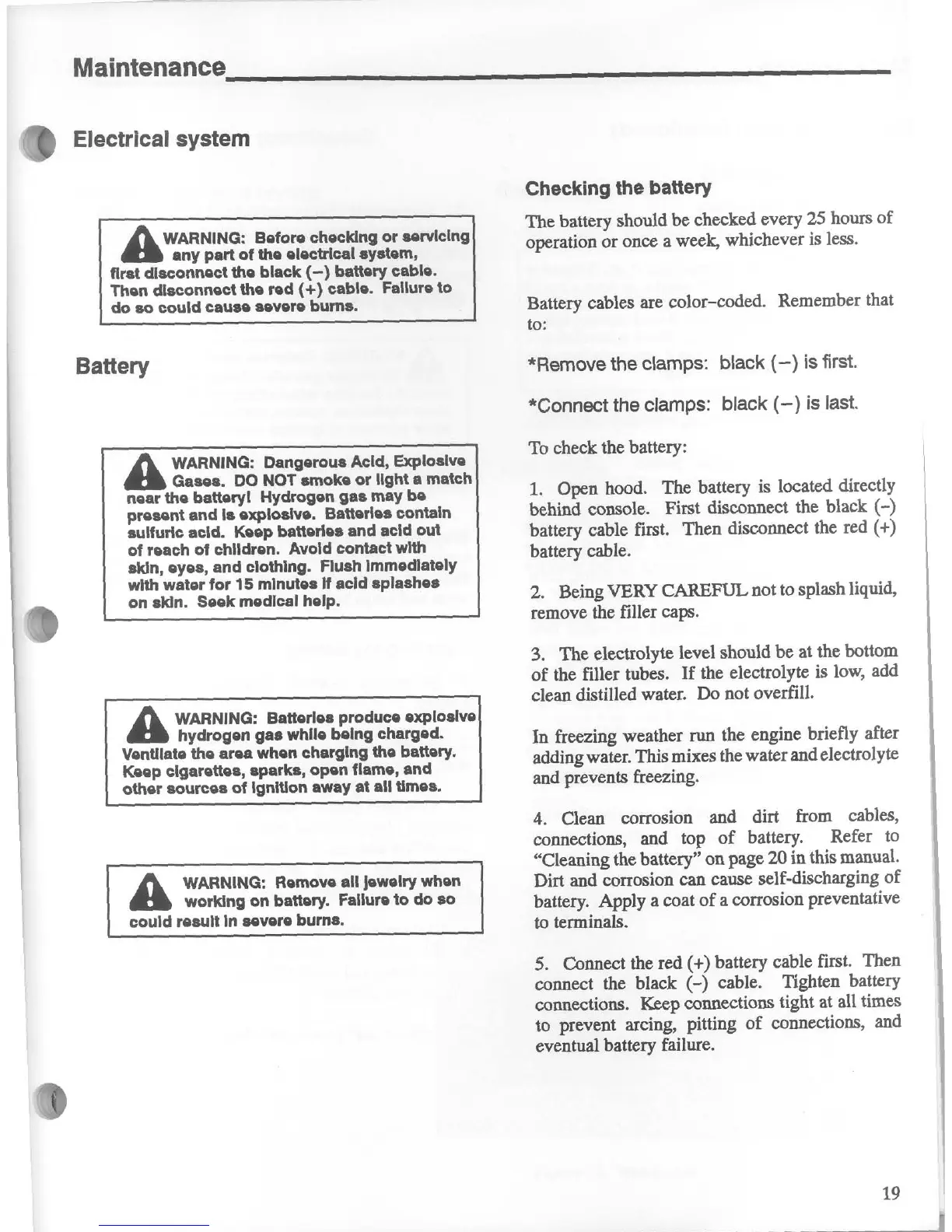 Snapper MGT2000H - Electrical System; Checking the Battery