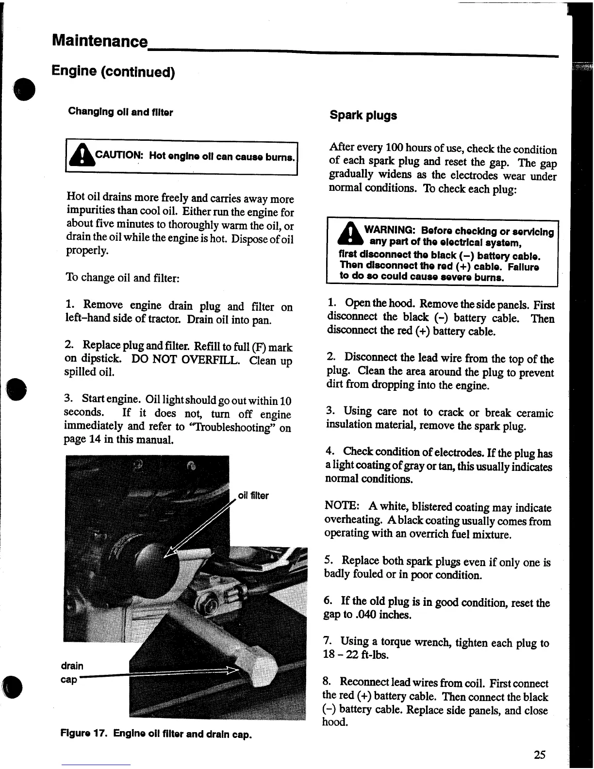 Snapper MGT2000H - Spark Plugs; Changing Oil and Filter