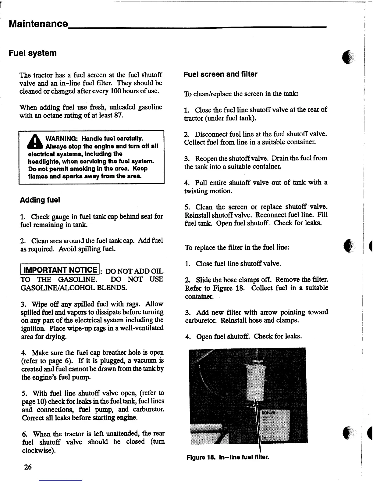 Snapper MGT2000H - Fuel System; Adding Fuel; Fuel Scree Nand Filter
