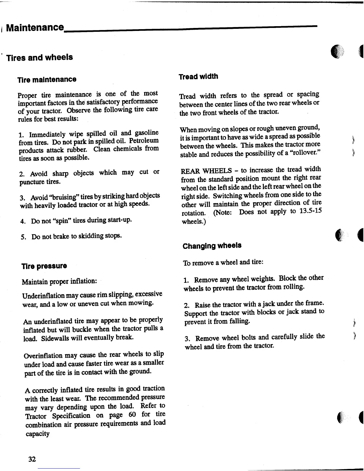 Snapper MGT2000H - Tires and Wheels; Tire Maintenance; Tire Pressure; Tread Width