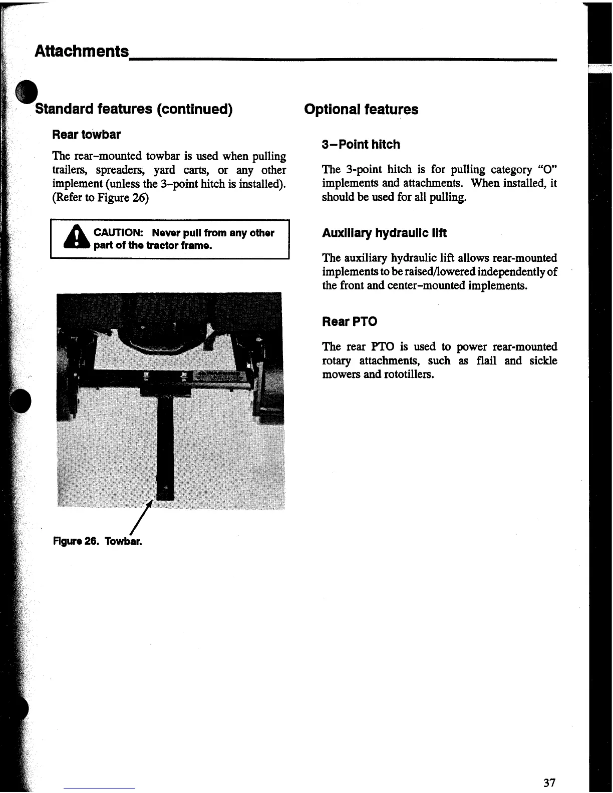 Snapper MGT2000H - Rear Towbar; Optional Features; 3-Point Hitch; Auxiliary Hydraulic Lift