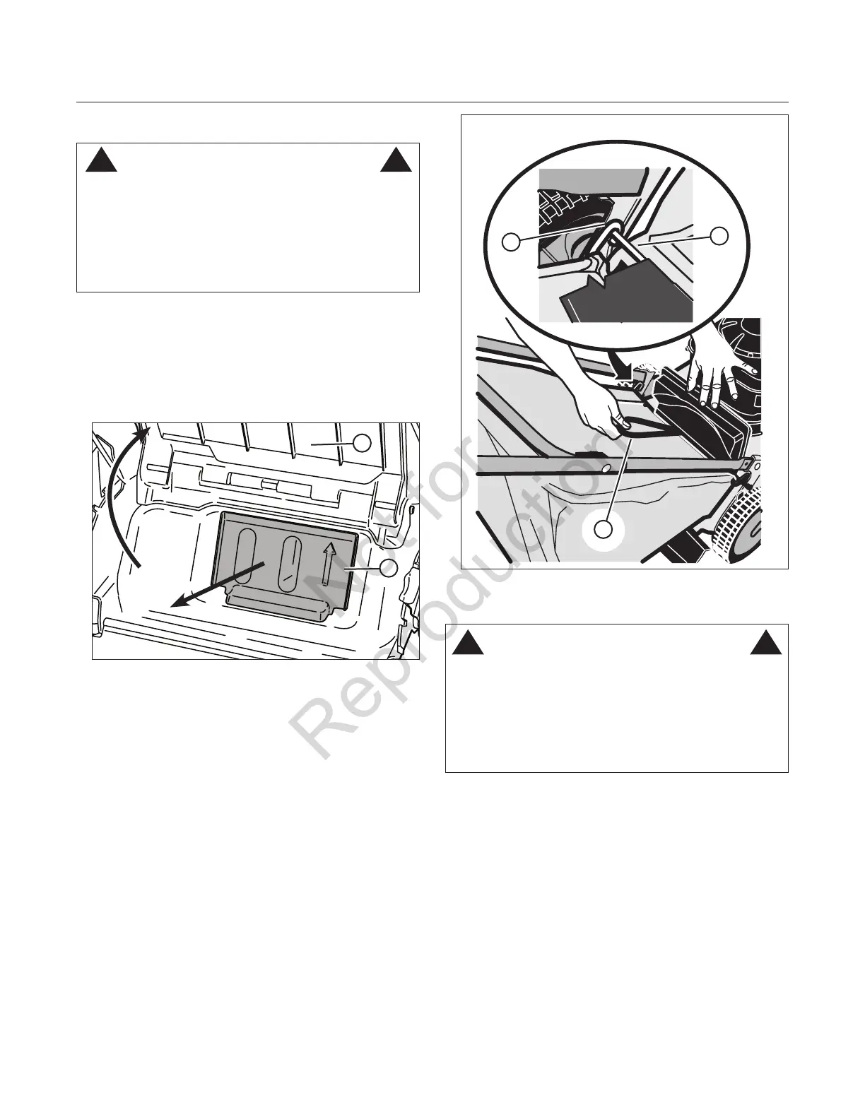 3. En tenant la poignée du sac à herbe (A, Figure 10),