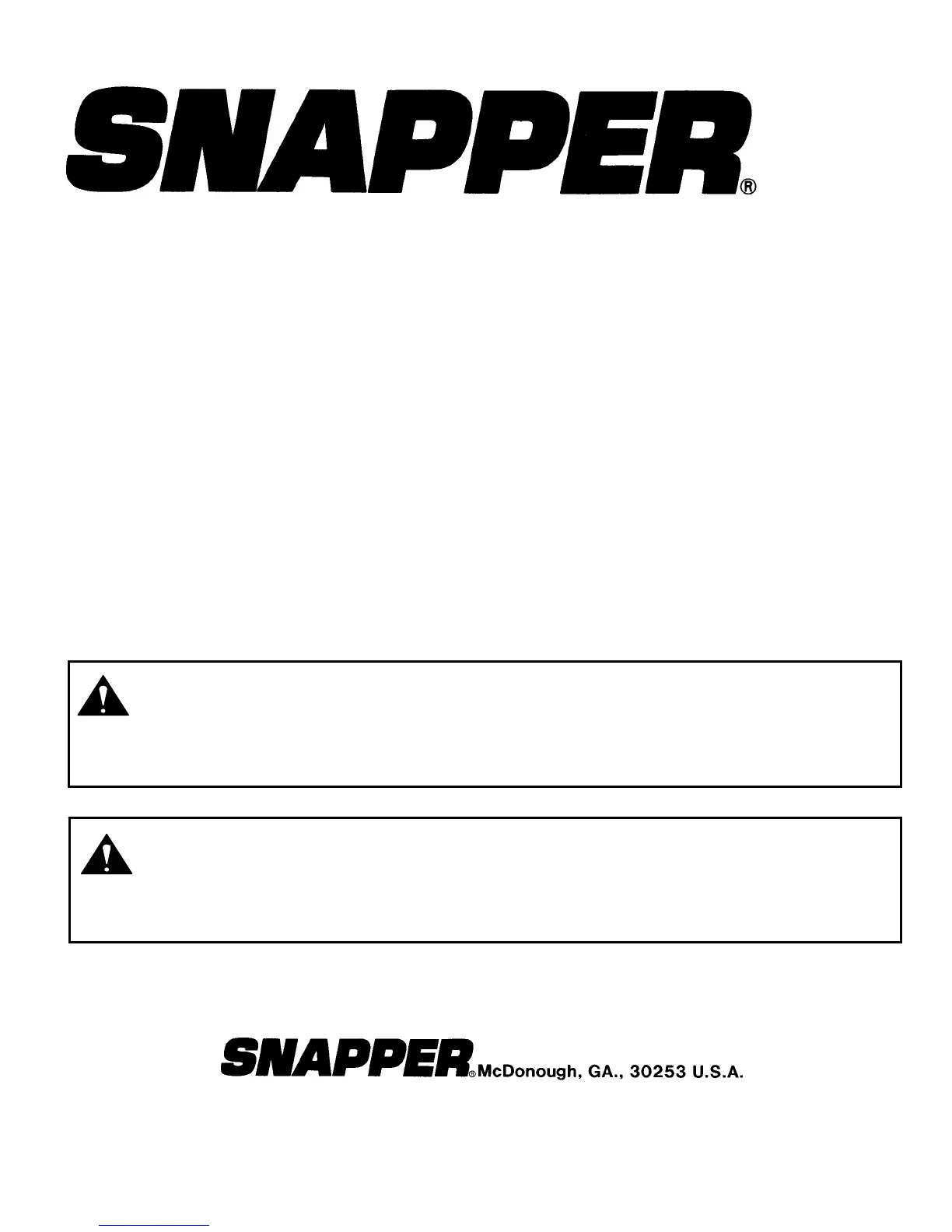 manual, and on the machine, engine and attachments. If you have any questions about your Snapper product,