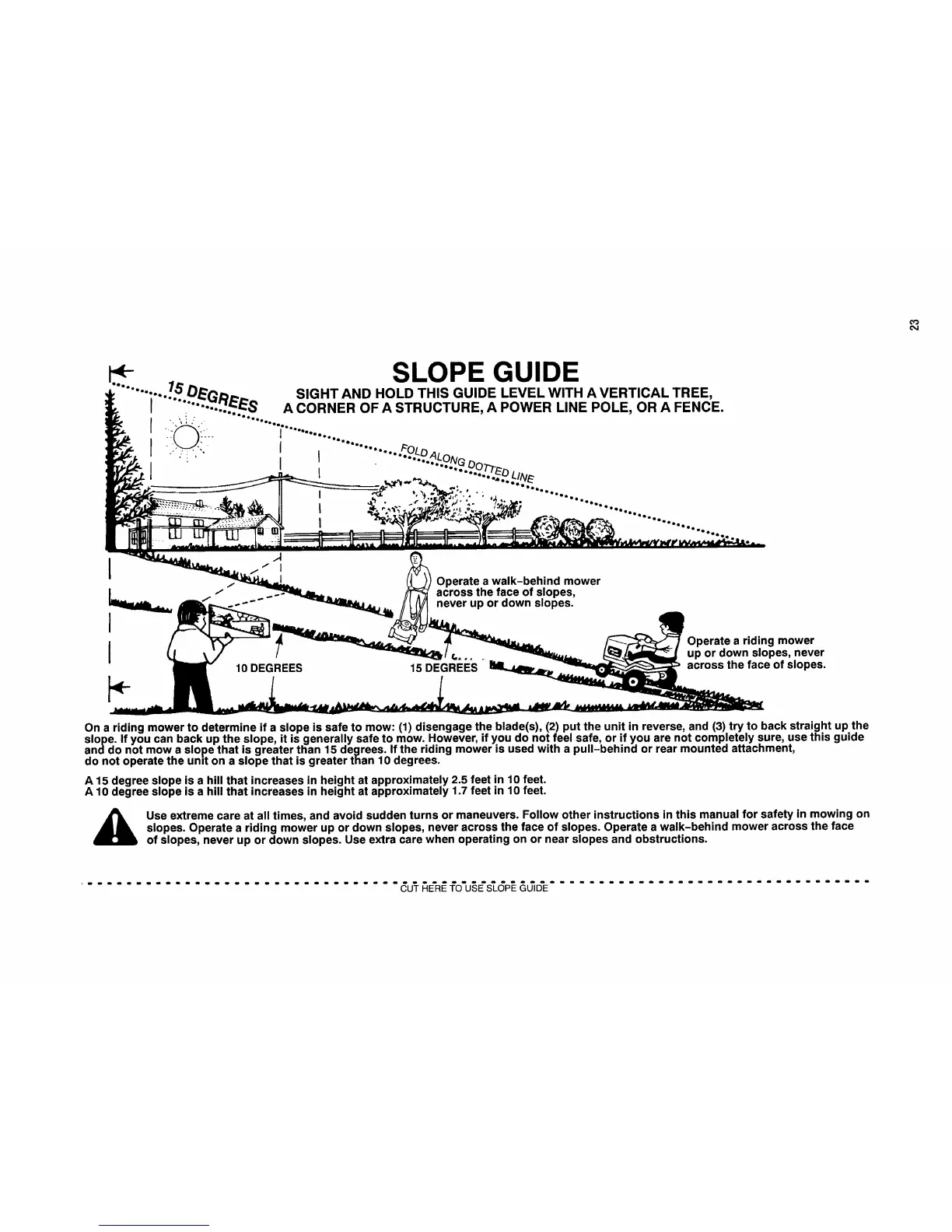slope. If you can back up the slope, it is generally safe to mow. However, if you do not feel safe, or if you are not completely sure, use this guide