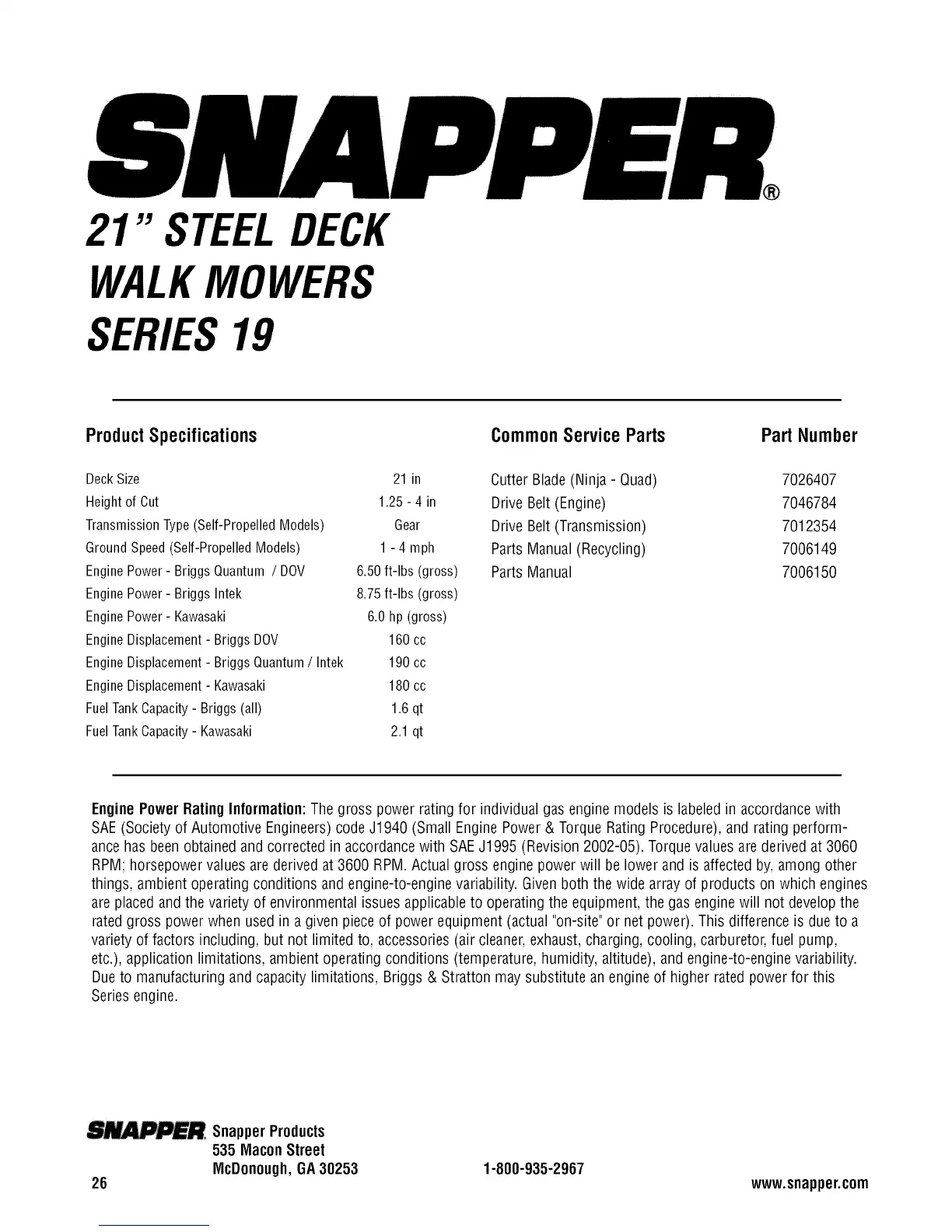Dueto manufacturing and capacity limitations, Briggs & Stratton may substitute an engine of higher rated power for this