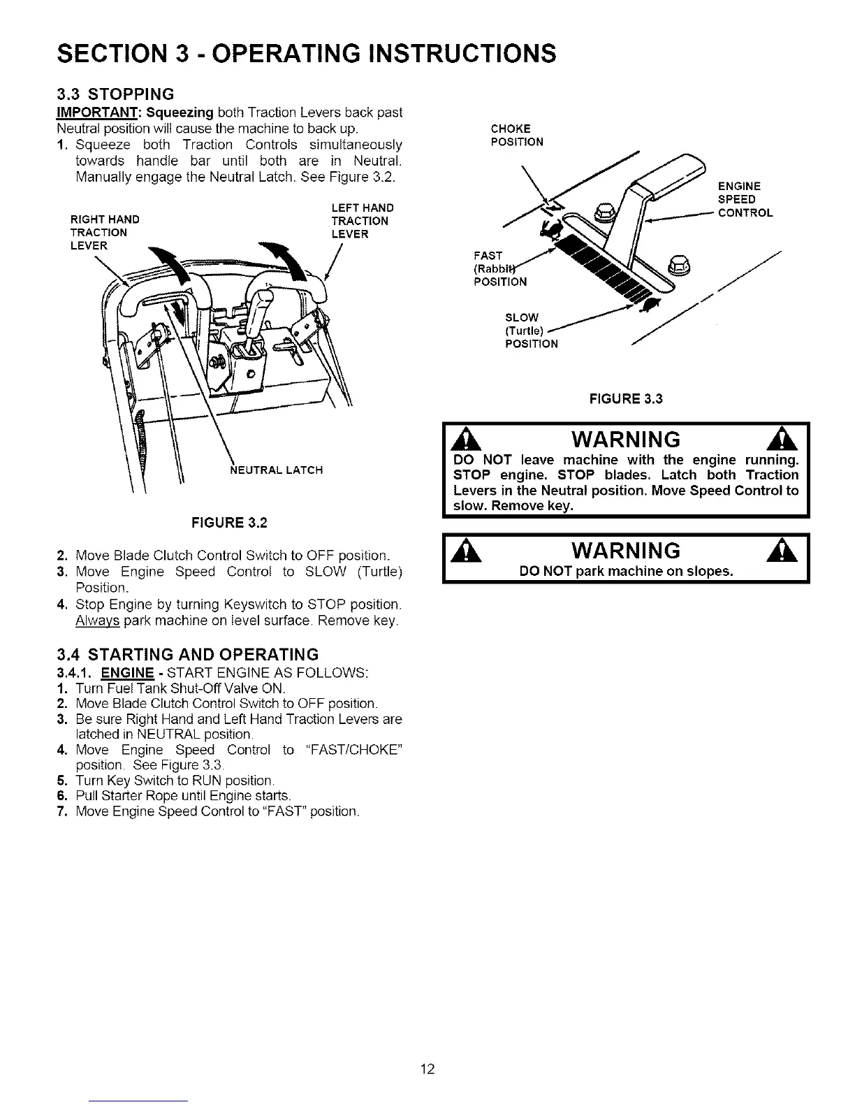 3. Be sure Right Hand and Left Hand Traction Levers are