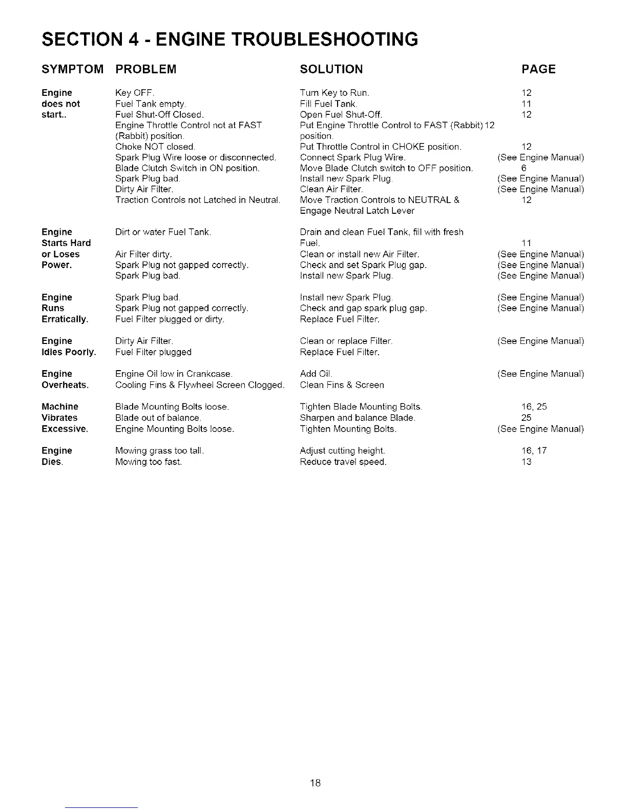 SECTION 4 - ENGINE TROUBLESHOOTING