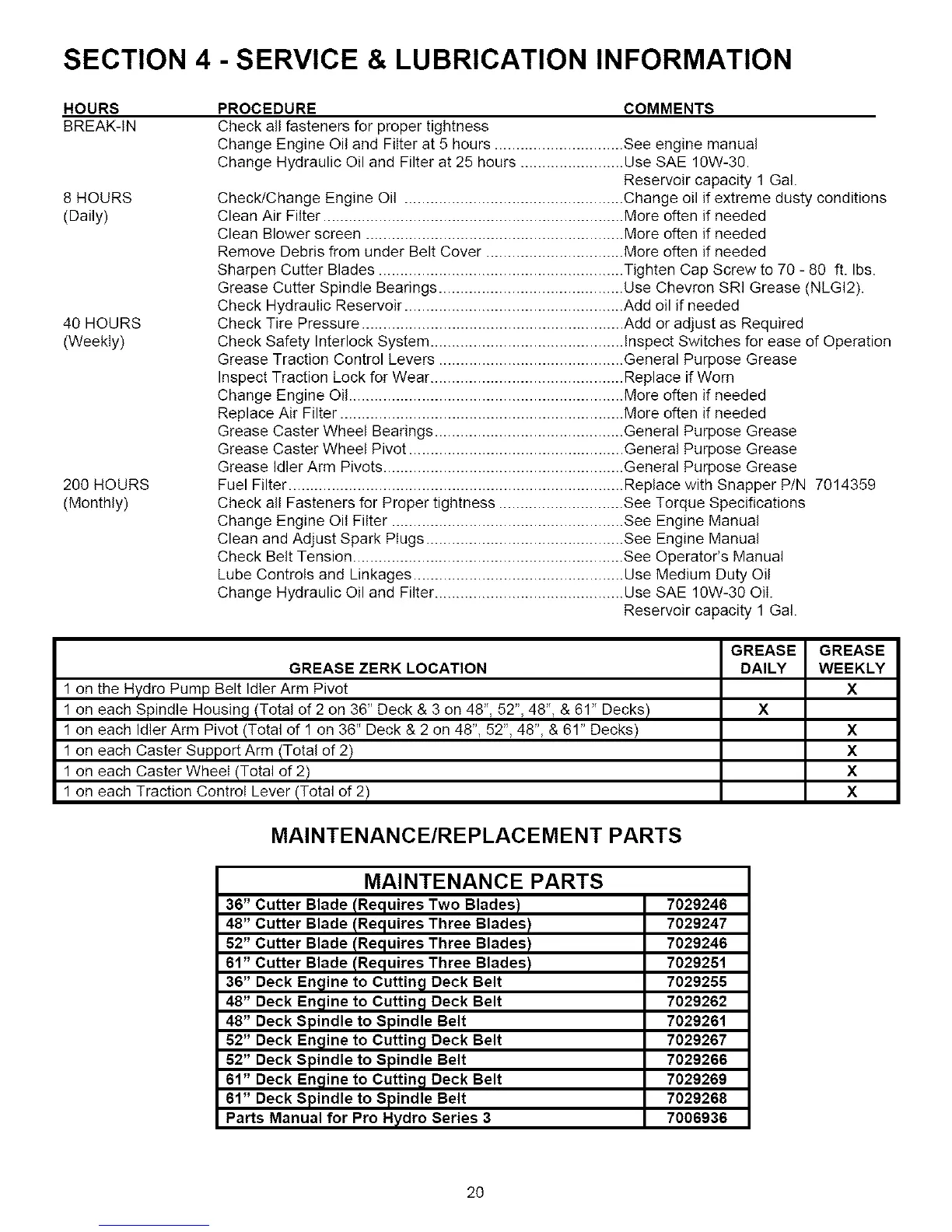 SECTION 4 - SERVICE & LUBRICATION INFORMATION