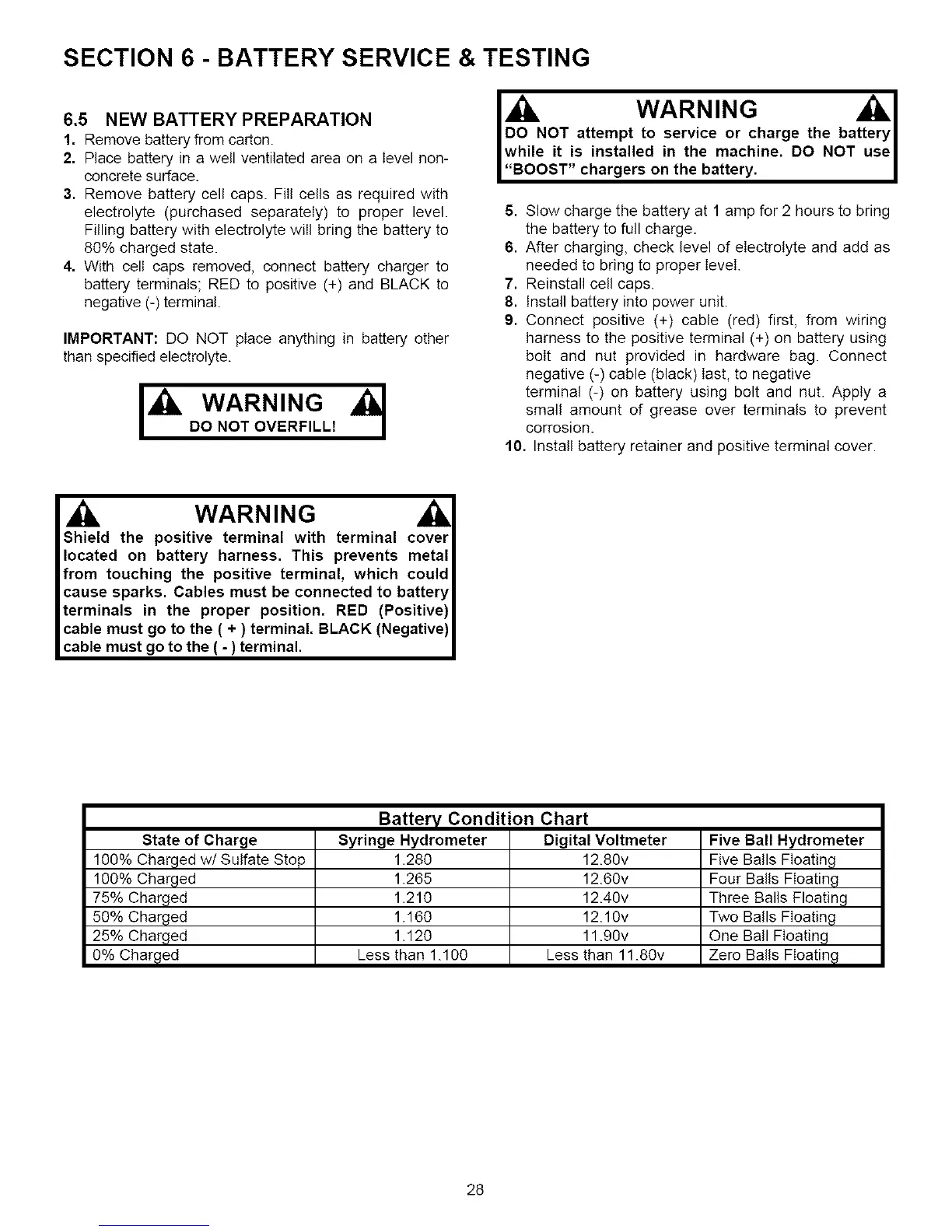 SECTION 6 - BATTERY SERVICE & TESTING