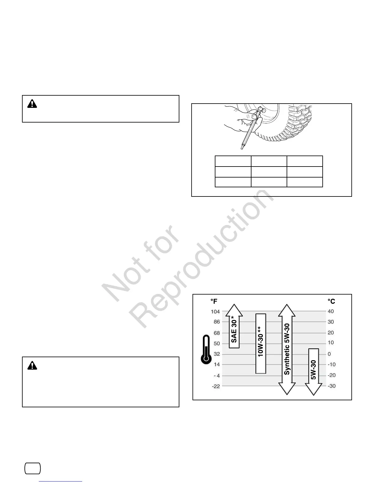 * Under 4 °C (40 °F) vil bruken av SAE 30 føre til vanskelig start.