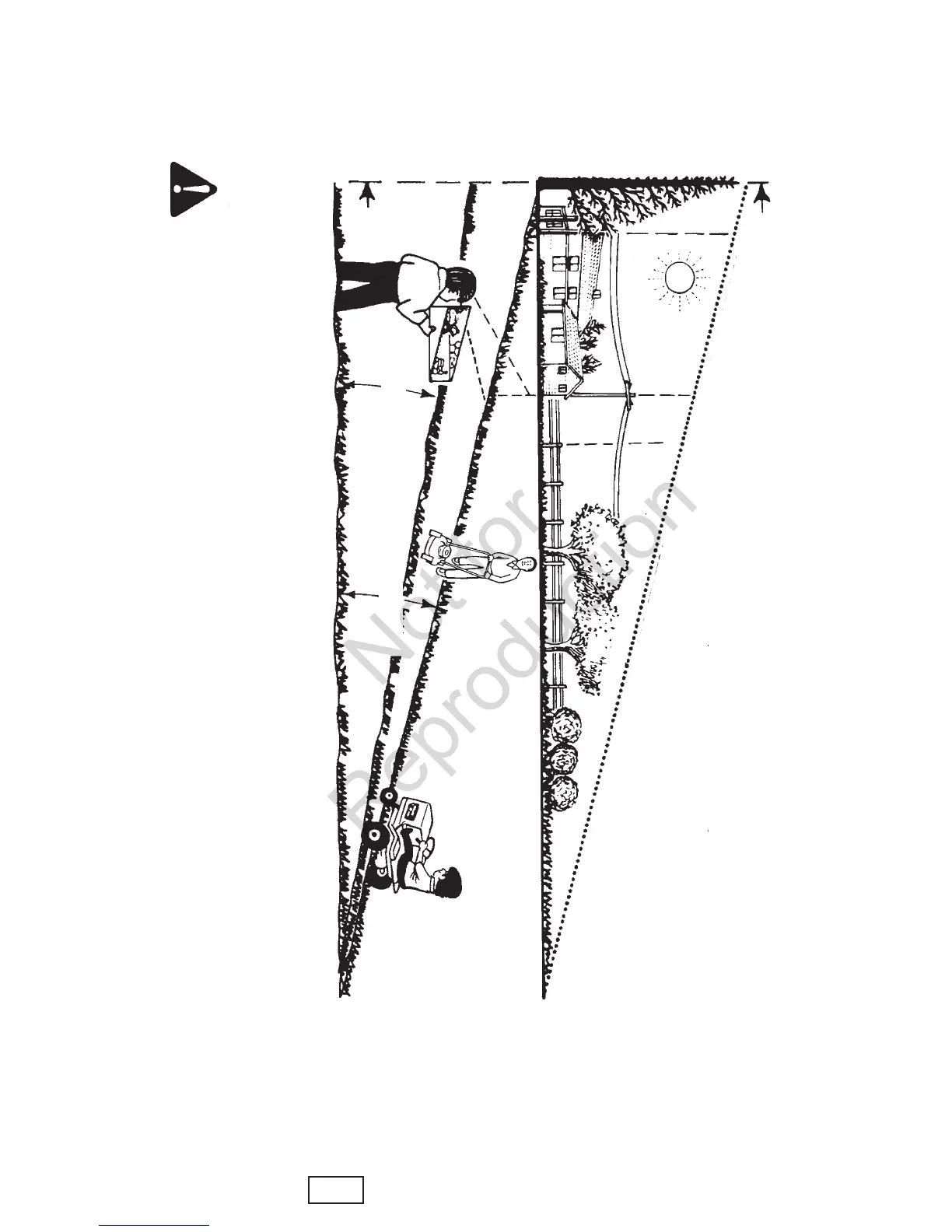 Faites très attention en permanence et évitez les virages et manœuvres brusques. Suivez les autres instructions de ce manuel pour la sécurité pendant la tonte