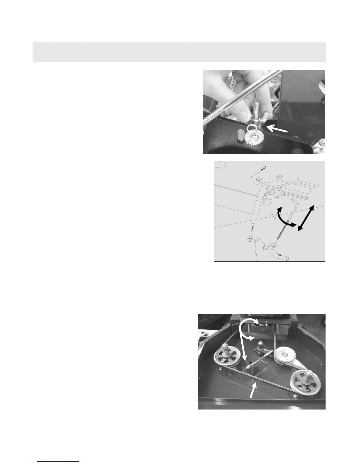 blades. Place a belt tensioning gauge in the center of the belt span. The gauge should read 10 pounds