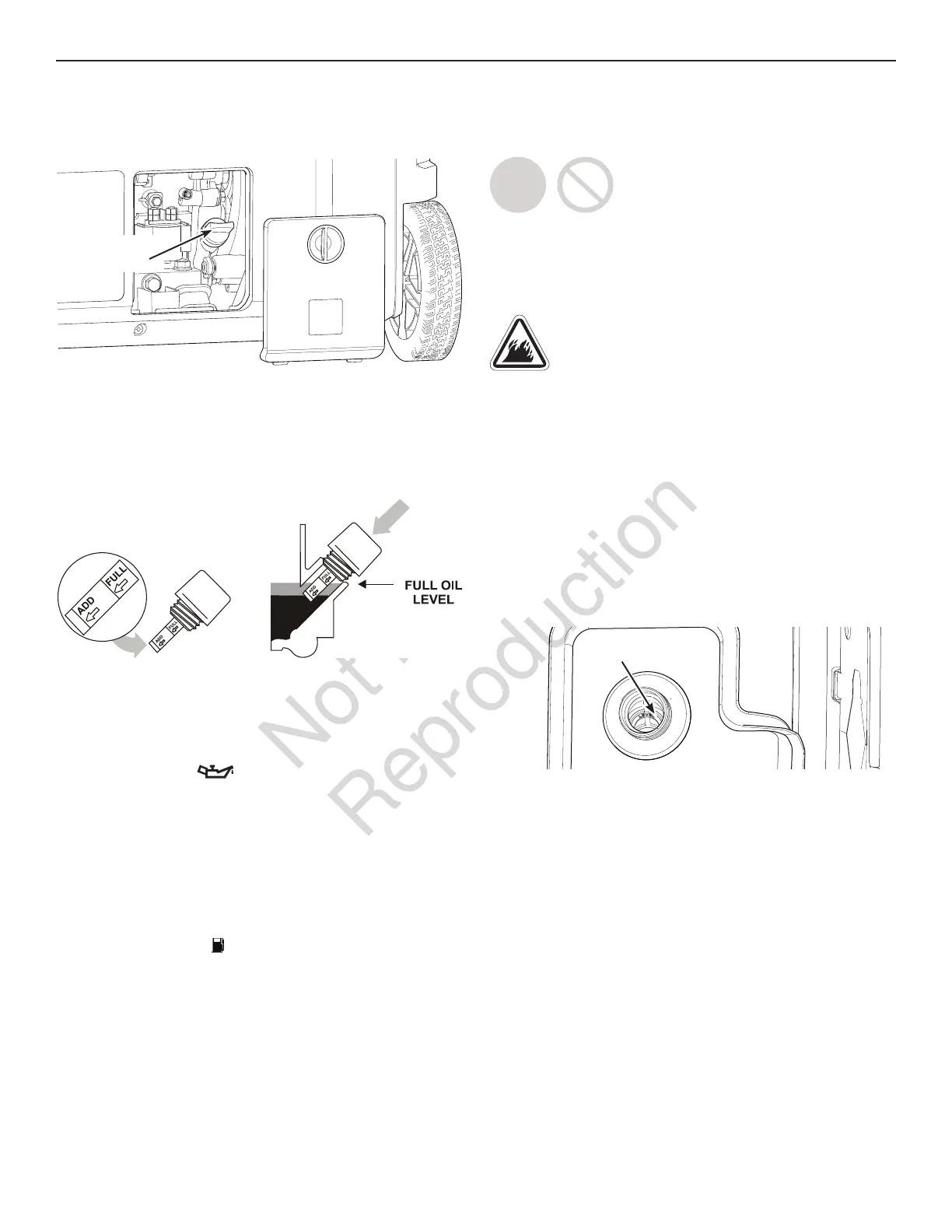 • Fill fuel tank outdoors. Keep fuel away from sparks, open