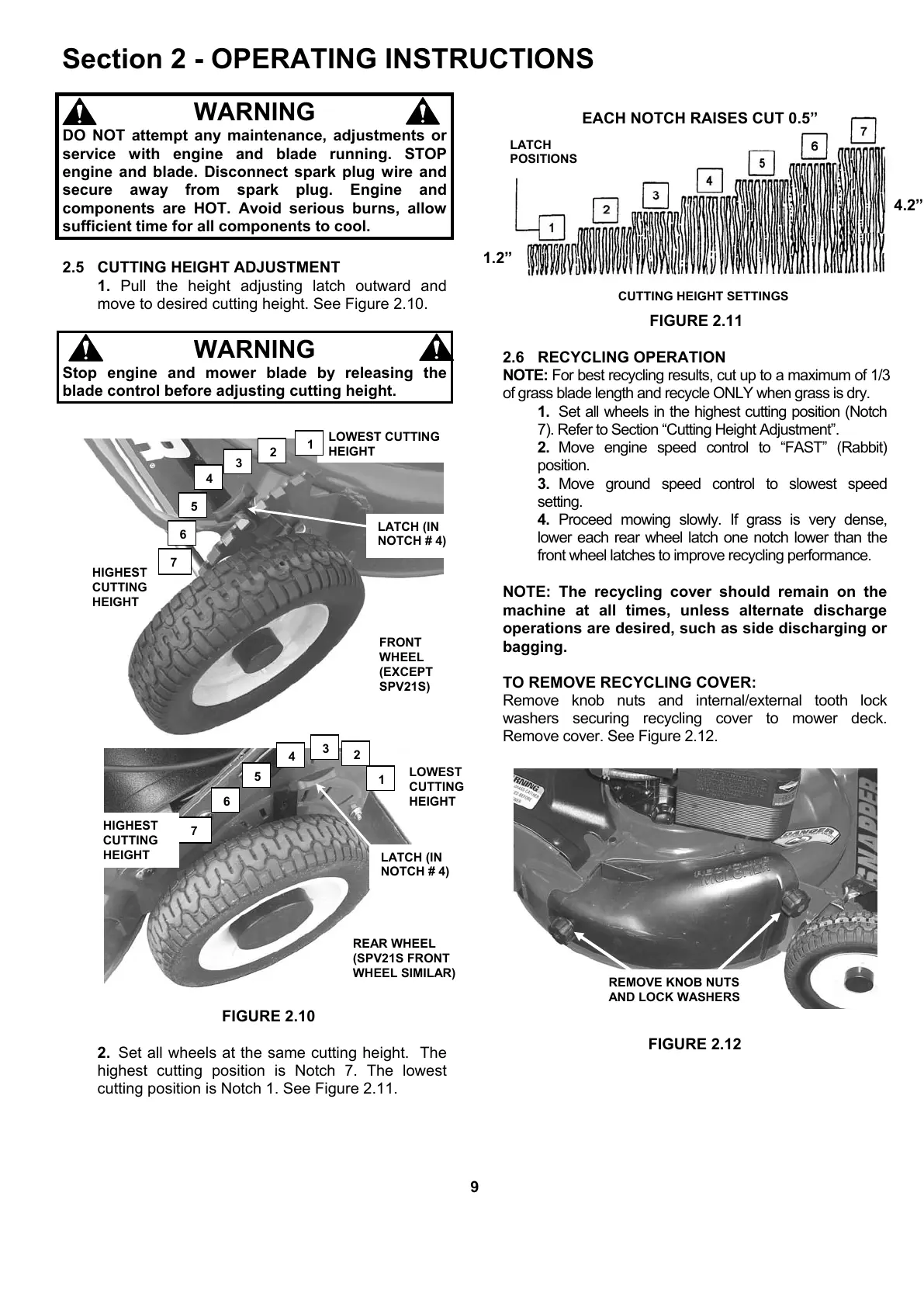 move to desired cutting height. See Figure 2.10.