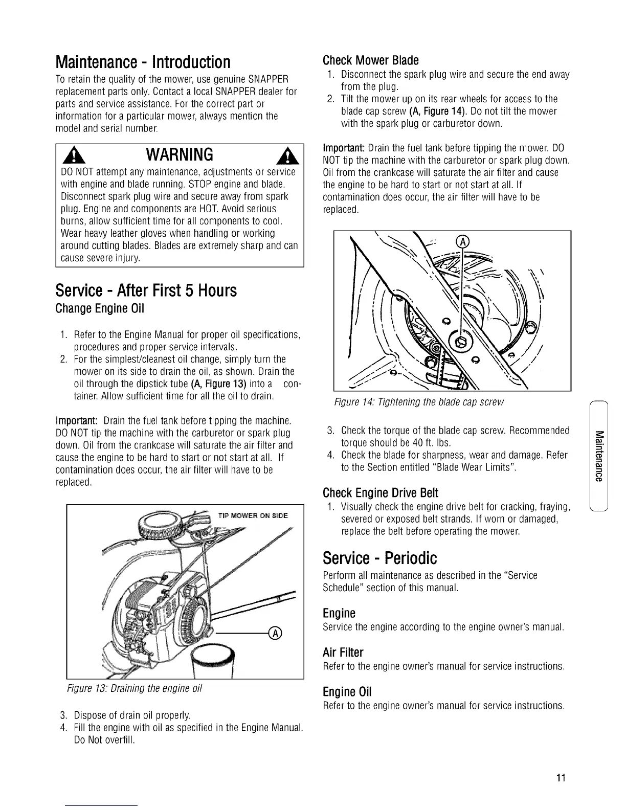 blade capscrew (A, Figure 14). Do not tilt the mower
