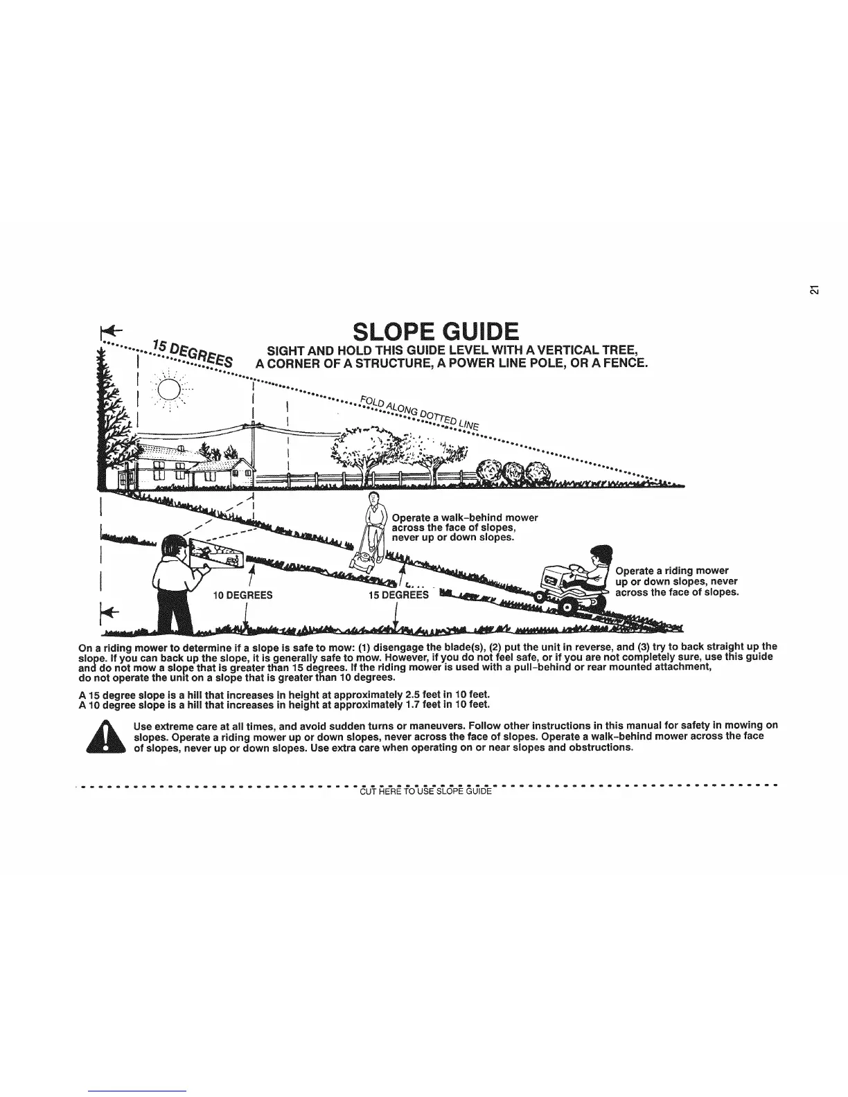slope, if you can back up the slope, it is generally safe to mow. However, if you do not feel safe, or if you are not completely sure, use this guide