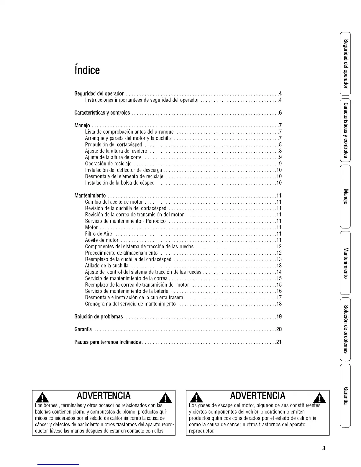 Reemplazo de la cuchilla del cortac6sped ....................................... 13
