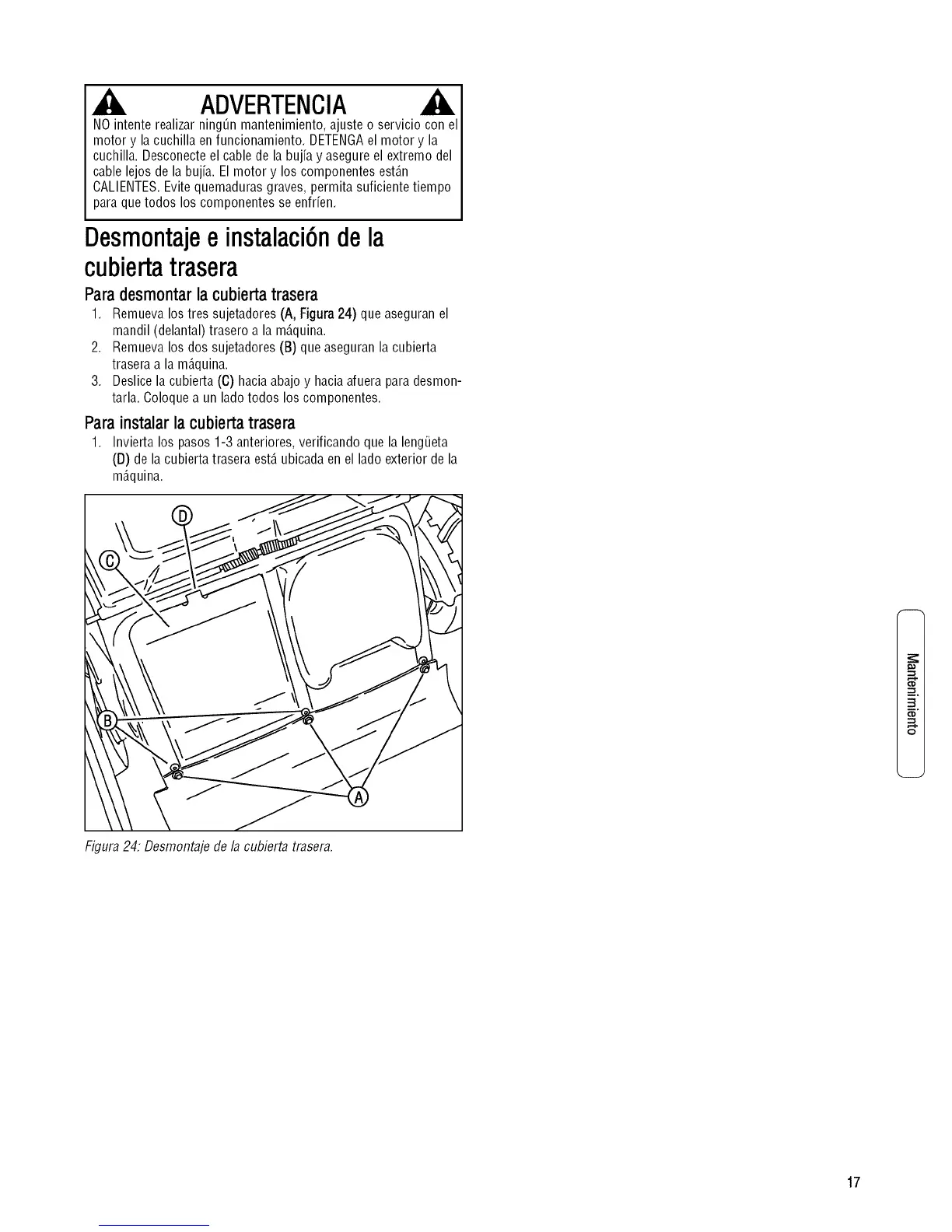 1. Remueva los tres sujetadores (A, Figura 24) que aseguran el