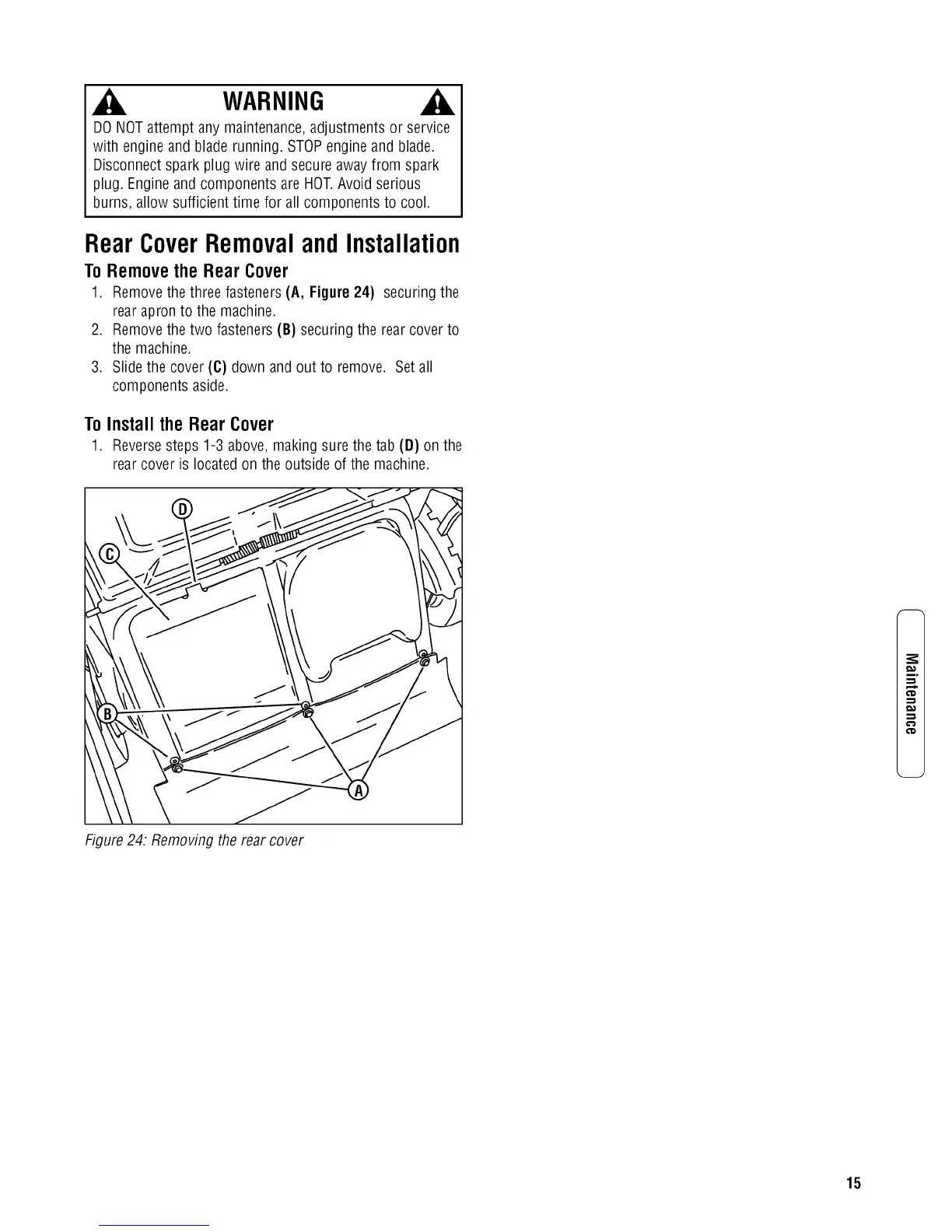 1. Remove the three fasteners (A, Figure24) securing the