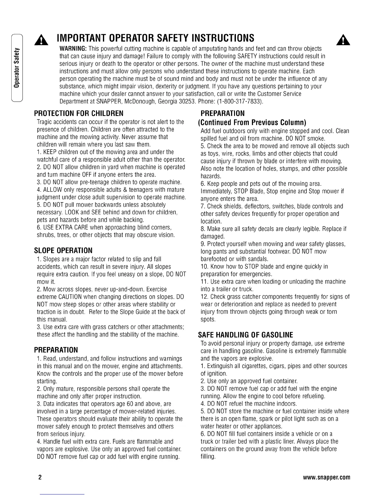 2 www.snapper.com