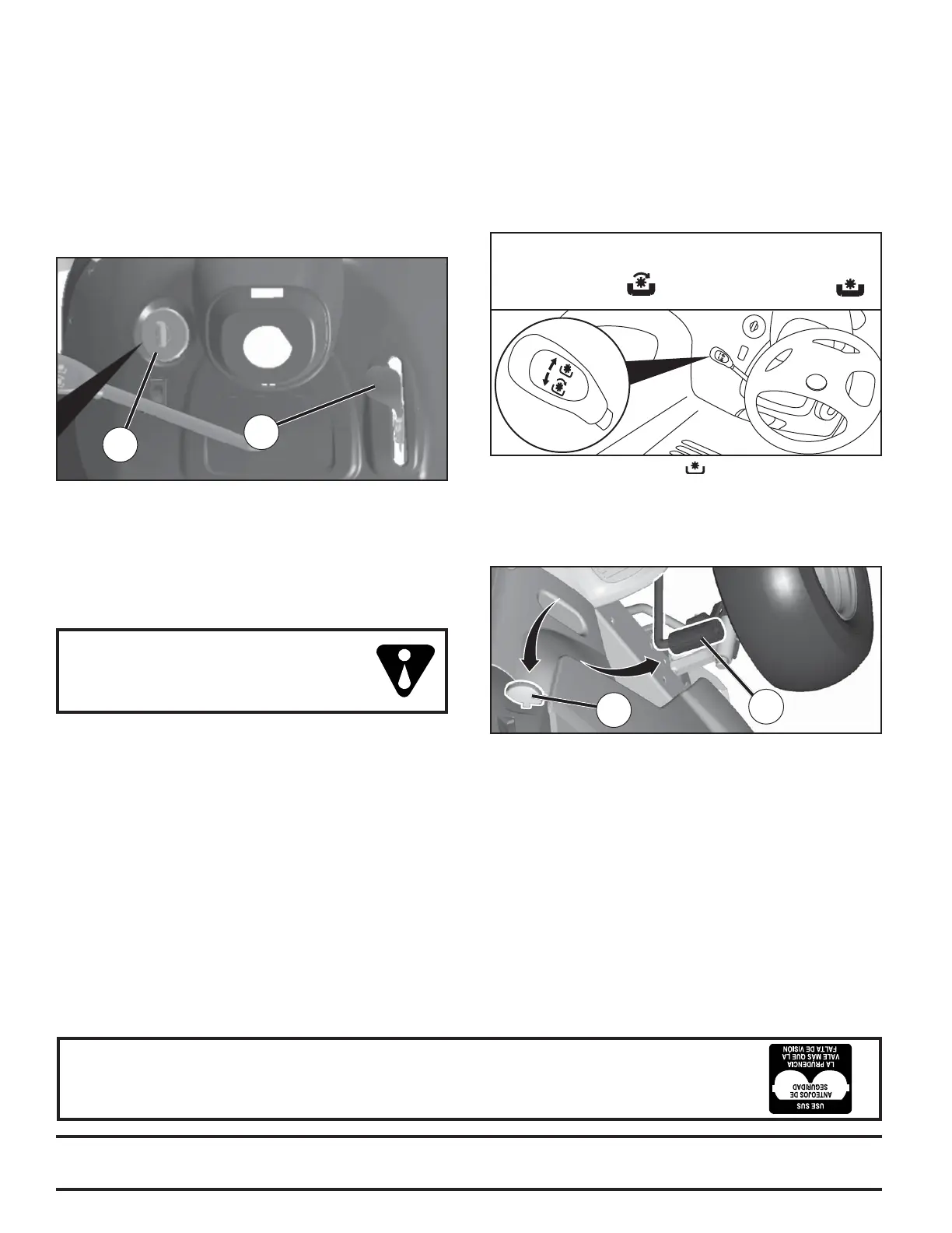 los ojos mientras opere su tractor o cuando haga ajustes o reparaciones. Recomendamos gafas de