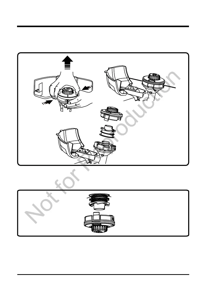 1. Press the tabs simultaneously on the side of the trimmer head and remove cover and spool.
