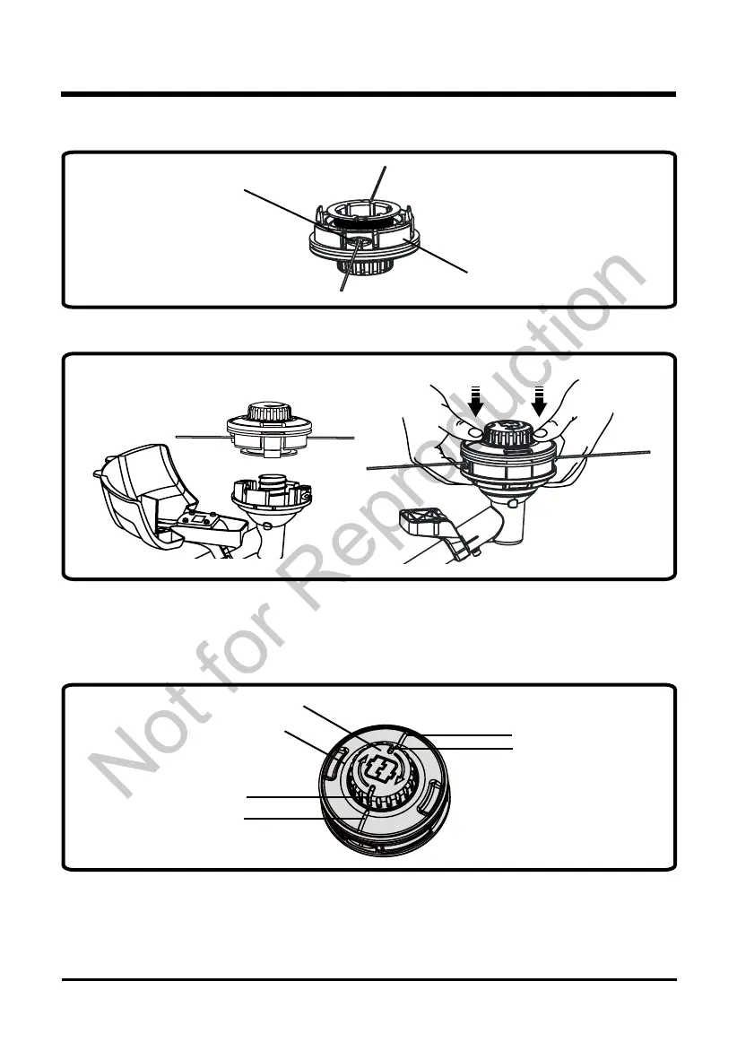 6. Reinstall the spool and cover onto the trimmer head. Push until cover snaps into place.